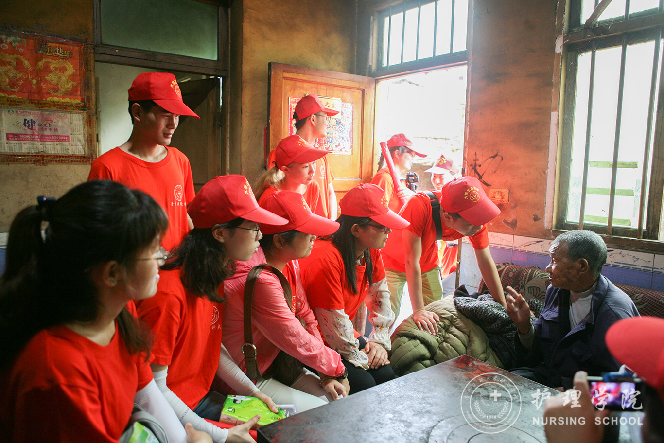 活动第一天,一抵达马路村,服务队稍作休整,就分头行动开展了“建国70周年”问卷调查活动,了解新时代给当地人民带来的生活变化。随后,队员们看望了当地的残疾人士,给他们送去了爱心物资和温暖的问候。老师和同学们结合所学的护理知识和技能,耐心的指导病人家属日常护理工作。当天志愿者们专程看望了当地的抗美援朝退伍老军人,给老人送去了爱心大米、油、洗衣粉等物品,聆听老人讲述自己在战争中的亲生经历,从中感受到中国军人大义凛然、不怕牺牲的伟大精神,接受了一场坚定革命意志的洗礼。