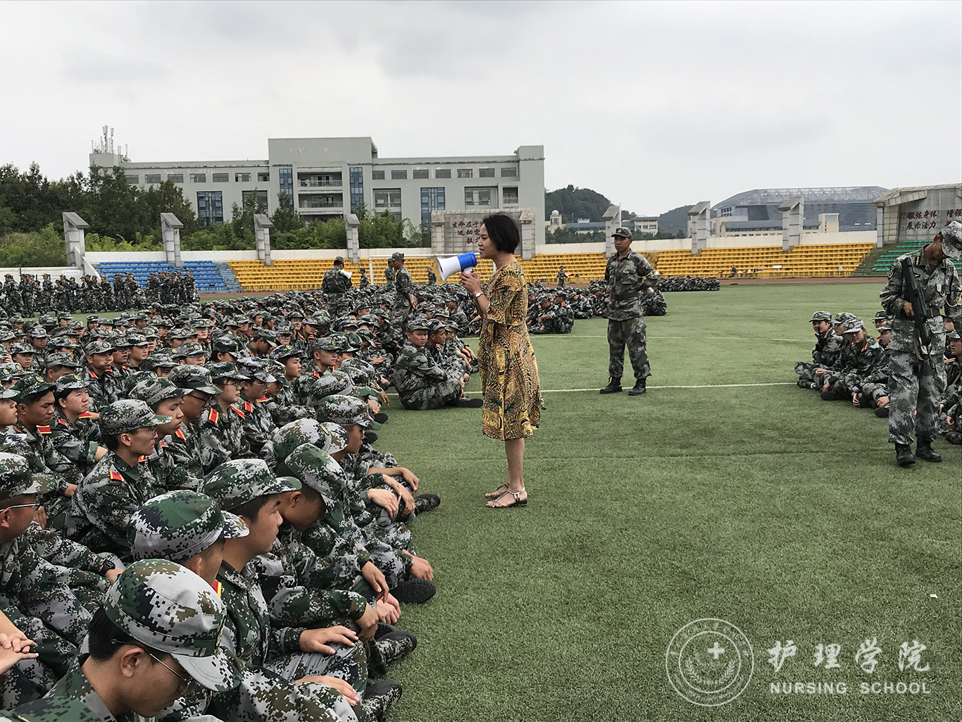 杨英首先代表学院领导班子对参训教官进行了亲切问候,仔细询问了新生的军训情况,并对教官的辛苦付出表示衷心的感谢。紧接着,杨英对军训的同学们表以暖心关怀,她提到BEAT365英国官网是一个温暖的大家庭,在以后的学习生活中,同学们会越来越感受到来自学院的殷切关照,并着重强调在军训过程中切记要注意安全,刻苦训练的同时务必保护好自己,同学之间应相互鼓励、互相帮助。接下来,王秀红对大家不惧困难、刻苦训练的军训精神给予充分肯定,并勉励大家:军训是磨炼坚强意志、养成良好学习生活习惯的一道坎,希望同学们能珍惜这次机会,刻苦训练,坚持到底,为将来成为一名优秀的白衣战士打下良好基础。