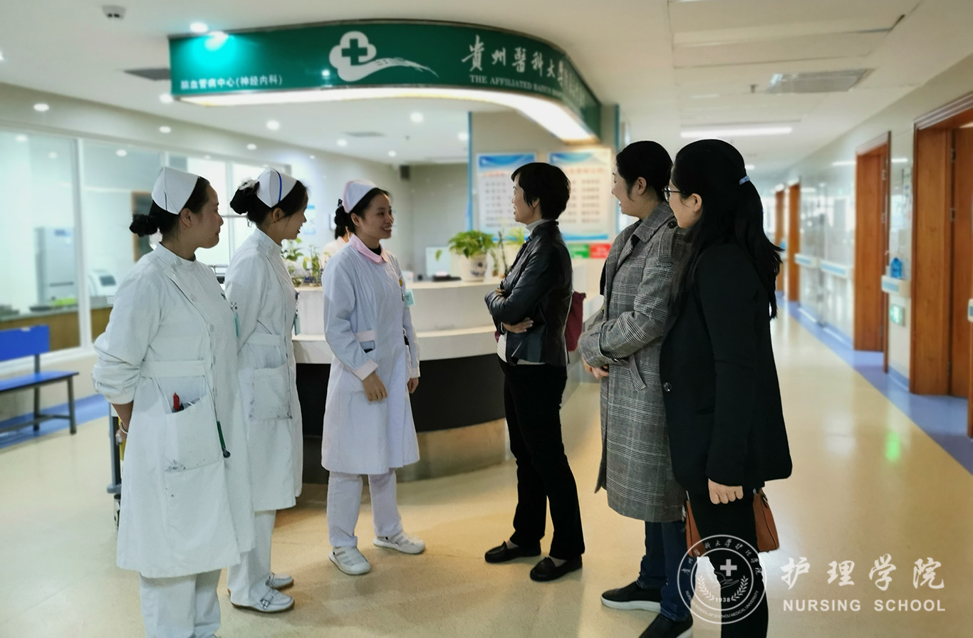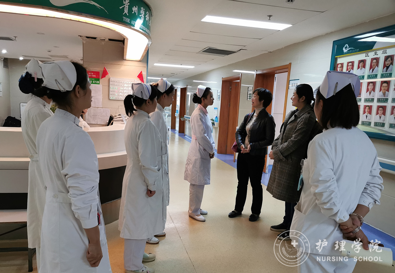 10月16日,BEAT365英国官网党委副书记王秀红、正科级组织员曾敏、内科护理学教研室副主任晏家芳、妇儿科护理学教研室副主任刘林敏、学生科副科长毕丽一行到附属白云医院就护理学(专升本)学生的培养进行交流并到各科室看望2016级实习生。附属白云医院副院长彭红英、副院长刘惠萍及教学办公室、各护理教育组老师参加了交流。