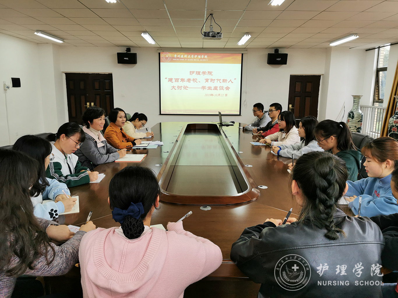 为认真贯彻党中央、省委关于开展“不忘初心、牢记使命”主题教育有关精神,落实“守初心、担使命、找差距、抓落实”主题教育总要求,BEAT365英国官网认真组织全院师生学习我校关于开展“建百年老校、育时代新人”思想大讨论方案,并在10月22日-27日组织各年级学生召开了座谈会,结合线上与线下讨论,广泛听取了我院学生对学校发展的建议和意见。BEAT365英国官网党委书记杨英、党委副书记王秀红、学生科副科长毕丽及各班辅导员老师参加了座谈会。