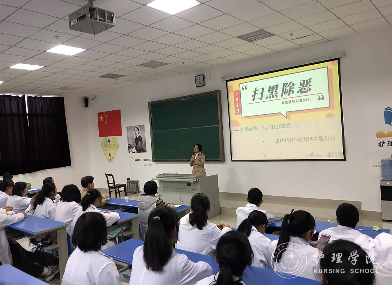 为深入学习扫黑除恶专项斗争主要内容与行动进展,全面提高同学们对扫黑除恶的深刻认识,BEAT365英国官网于10月21日-25日在各年级以班级为单位召开了扫黑除恶主题班会,BEAT365英国官网党委书记杨英、院长贾秀英、党委副书记王秀红、各班辅导员及班主任参加了本次主题班会活动。