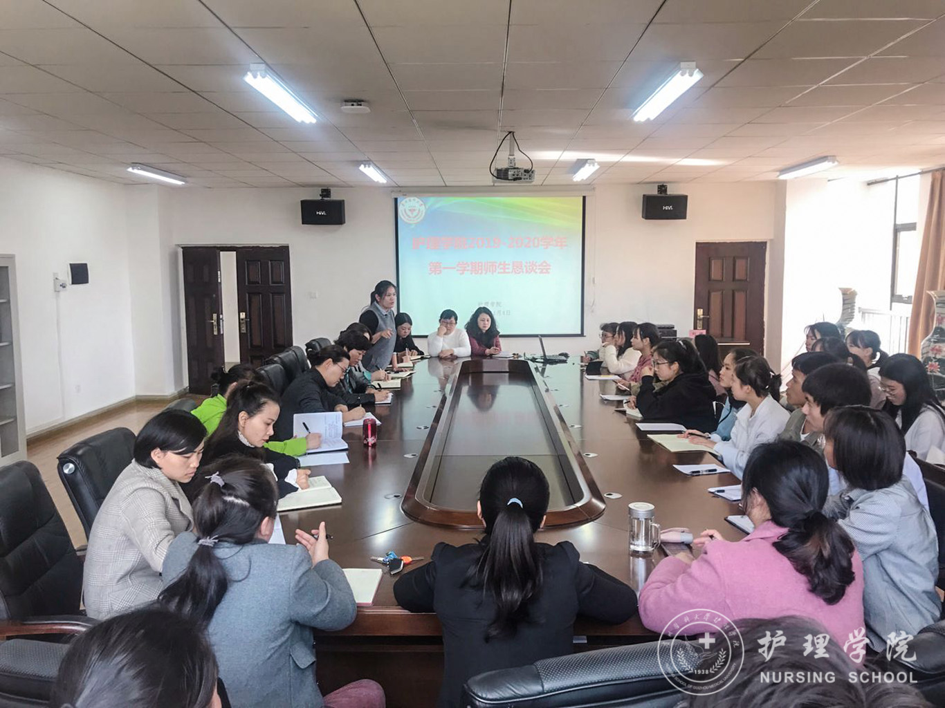 11月5日至7日,BEAT365英国官网2019-2020学年第一学期师生恳谈会分别在北校区和南校区召开。我院党政领导、全体专业教师、教学科研管理科、学生管理科相关老师及各年级学生代表参加了会议,会议由教学科研管理科科长卢海霞主持。
