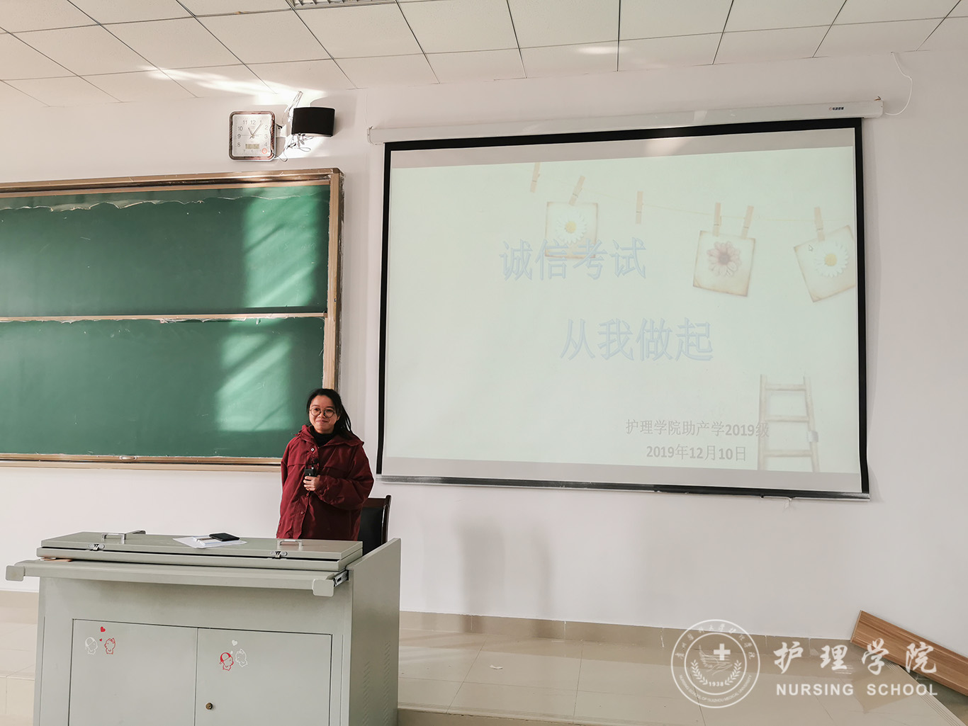 为进一步落实我校考场纪律及学生寝室管理相关规定,加强学生诚信考试的自觉性,进一步维护宿舍安全卫生的意识,12月10日,BEAT365英国官网2019级助产班开展了“考试诚信别忘记,寝室安全要牢记、”主题教育班会。本次班会由辅导员曾敏主持,助产学2019级全体同学参加。