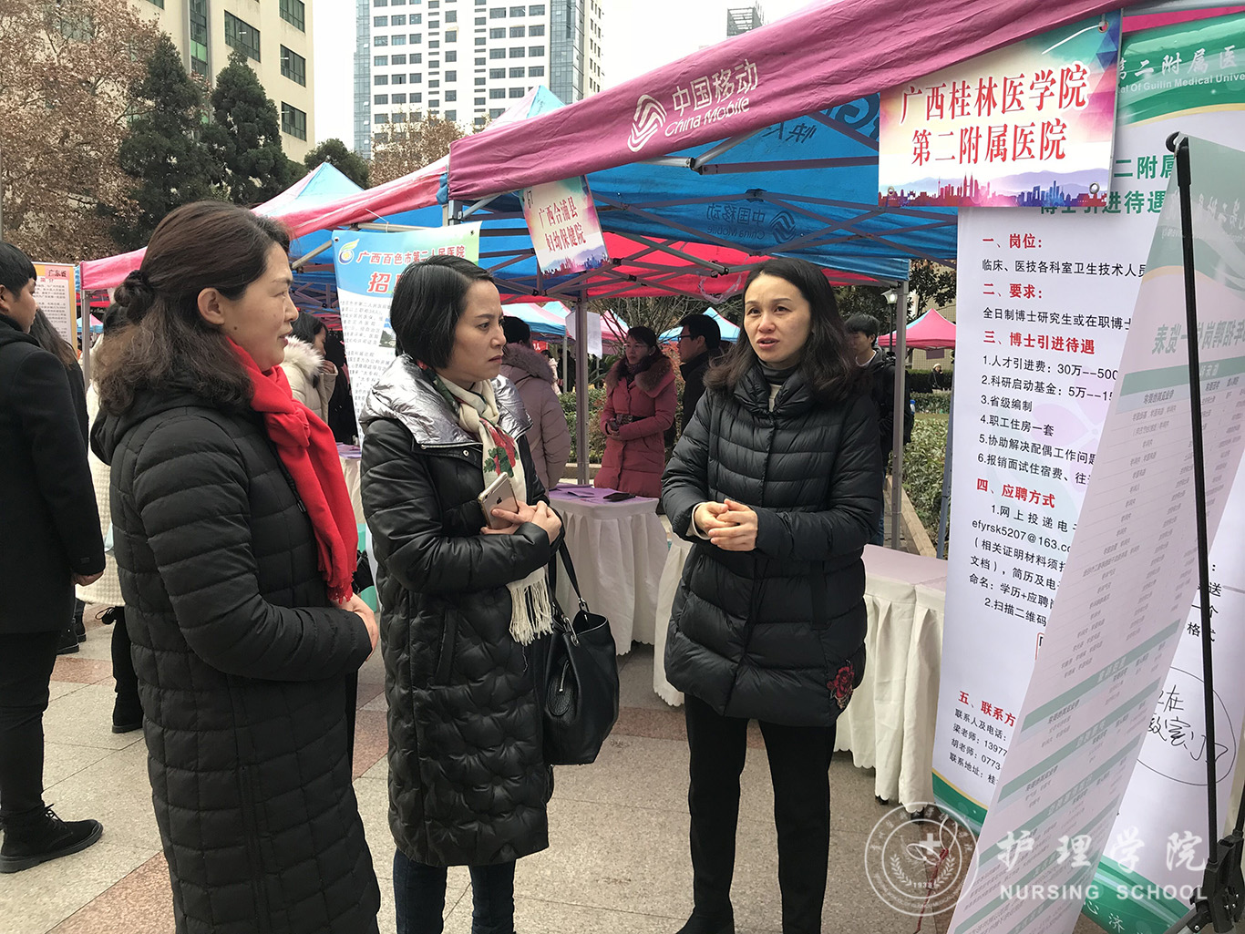 12月20日下午,桂林医学院第二附属医院招聘工作组在基础二号楼2401教室针对护理专业的毕业生召开了专场宣讲会,宣讲会后随即开展了面试和笔试,最终确定了录取名单。毕业班辅导员毕丽组织并参与了本次专场宣讲招聘会。