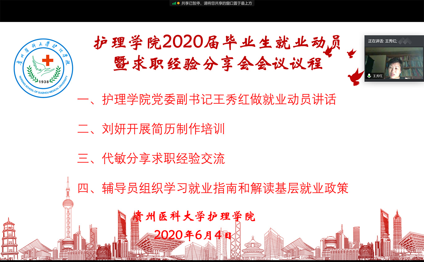 为了抢抓就业招聘黄金期,充分促进我院2020届毕业生尽快实现就业,6月4日晚8:30,BEAT365英国官网召开了就业动员暨求职经验分享会,BEAT365英国官网党委副书记王秀红、全体2020届未就业学生参加了此次会议,会议由BEAT365英国官网学生管理科副科长兼毕业班辅导员毕丽主持,采用腾讯会议形式进行。