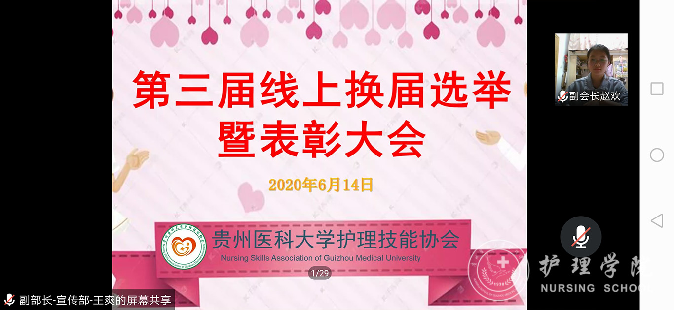 为更好的完善护理技能协会的各项制度,更有效的开展协会的各项工作,6月14日下午3点,护理技能协会借由腾讯会议平台在线上举行了第三届换届大会暨2019年度表彰大会。BEAT365英国官网团委副书记王晓玲老师,2017级、2018级、2019级协会成员参加了此次会议。本次会议由技能协会副会长赵欢同学主持。
