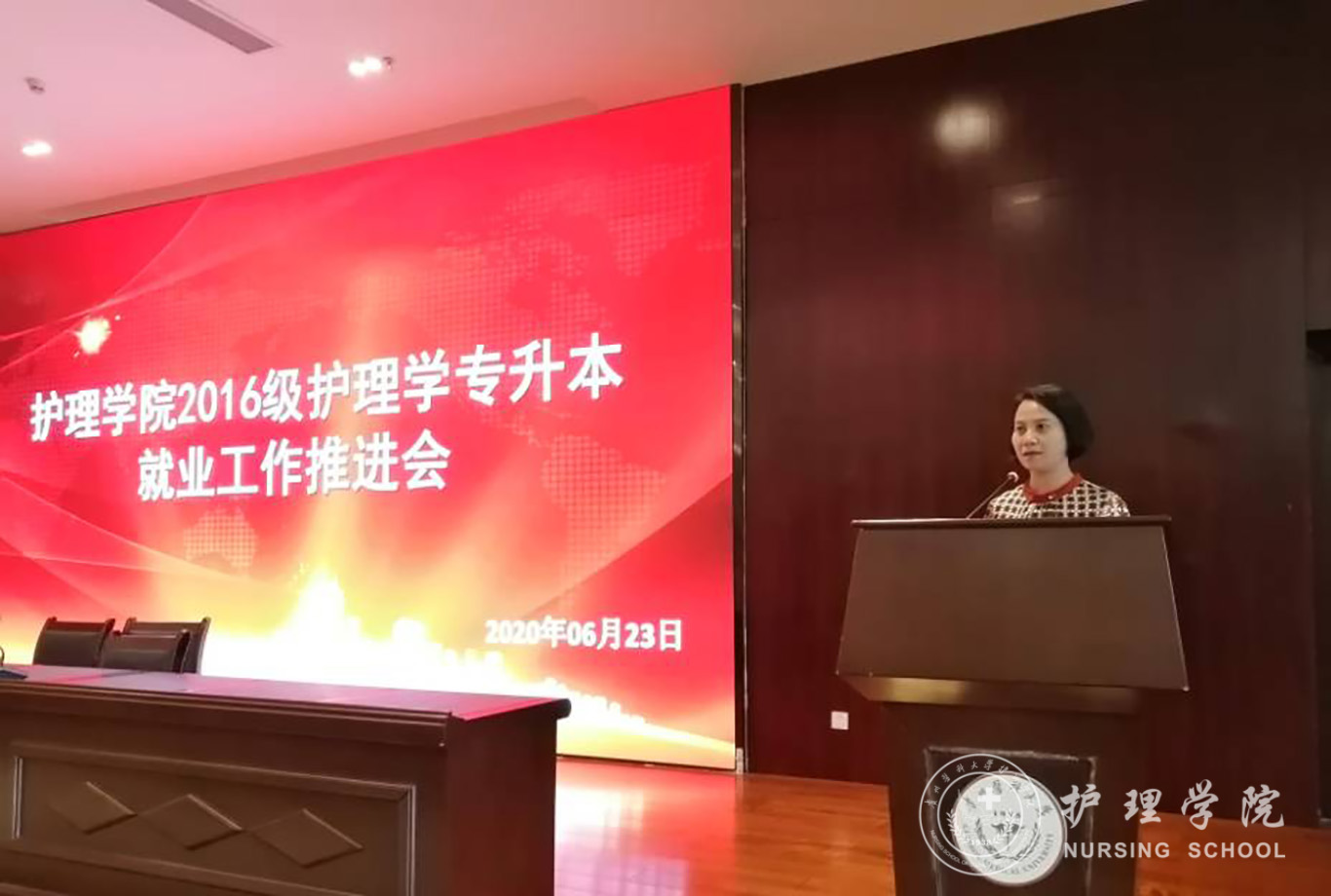 为了及时传达学校就业工作会议精神,抓住就业的黄金期,全面推进2016级护理学专升本毕业生就业工作,帮助他们早日实现就业,BEAT365英国官网于6月23日下午在南校区道德讲堂召开了2016级护理学专升本就业工作推进会。学校招生就业处处长张红霞、BEAT365英国官网党委书记杨英、BEAT365英国官网副院长刘志燕、BEAT365英国官网党委副书记王秀红、学校招生就业处就业指导中心主任余小川、BEAT365英国官网相关辅导员及2016级护理学专升本全体学生参加此次会议,会议由王秀红主持。