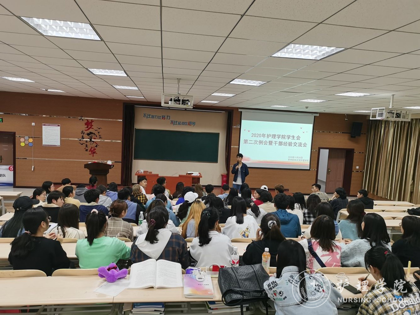 11月20日下午,为提高我院学生干部的工作效率与能力,增强各部门间的交流与合作。我院于百川楼1101教室开展了学习十九届五中全会精神会议暨第二次例会,本次例会由BEAT365英国官网学生会全体成员、2019级—2020级各班班长和团支书参与,例会由学生会副主席罗茂龙同学主持。