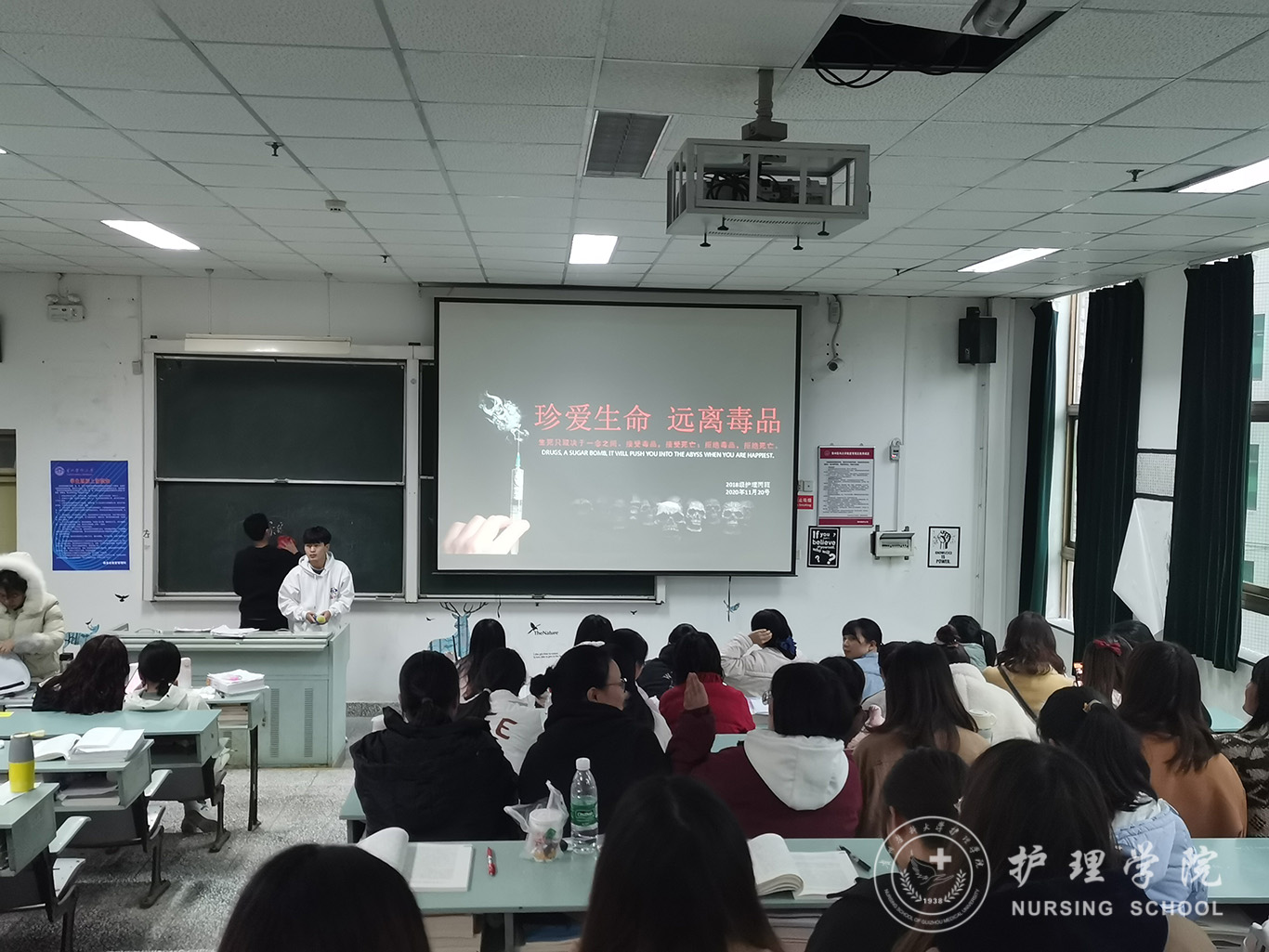 首先,班会围绕毒品的概念、毒品的分类、毒品的危害、毒品的防治及如何识别生活中常见的毒品等方面进行,进一步增加了大家对毒品的了解。随后,主持人详细讲解了吸毒传播病毒并让人感染各类传染疾病的过程,注射毒品对个人、他人、家庭以及社会的重大危害。班会中,主持人还给同学们呈现了吸毒者各类精神萎靡的图片,这些照片让同学们更加深刻认识到吸食毒品对人身体的毁灭性伤害。