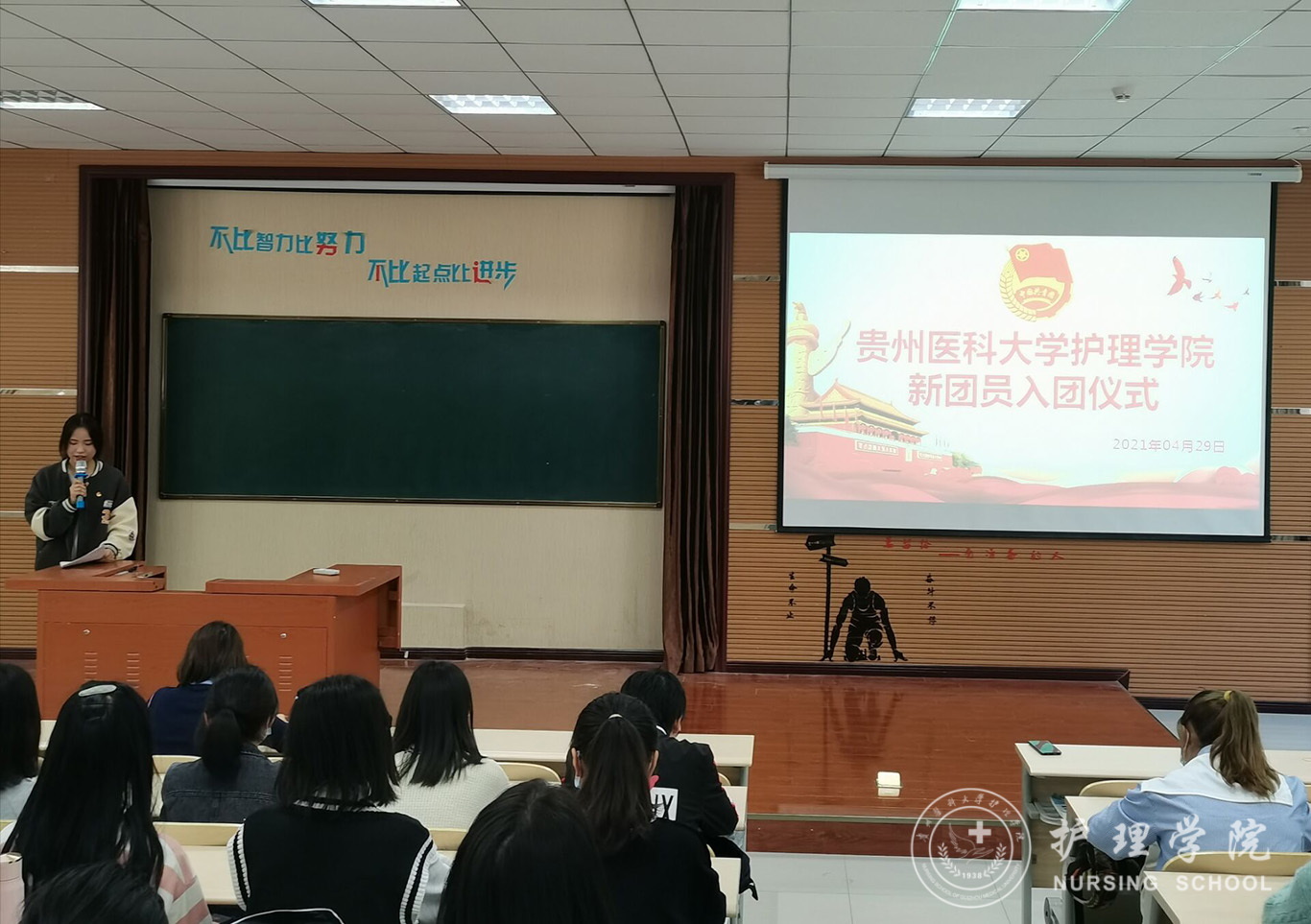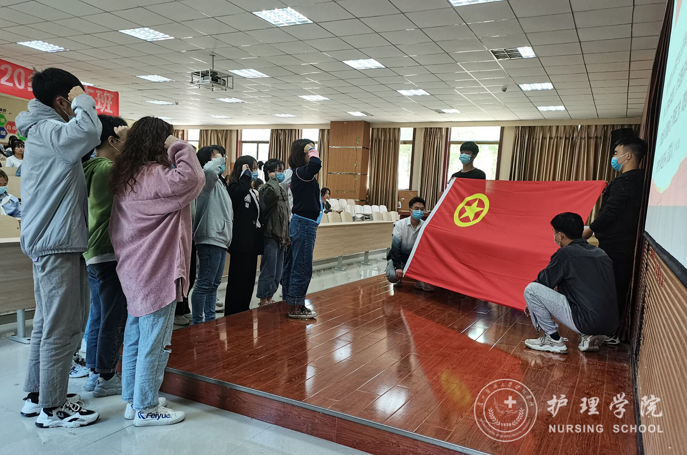 4月29日,为落实共青团中央组织开展的“学党史、强信念、跟党走”主题团日活动,BEAT365英国官网团委于南校区百川楼1101教室隆重举行了入团仪式。参加会议的有14名新团员、2019级—2020级各班入党积极分子代表、团员代表参会,学生第三党支部书记刘妍老师出席会议,会议由团学办副主任张凤毅同学主持。