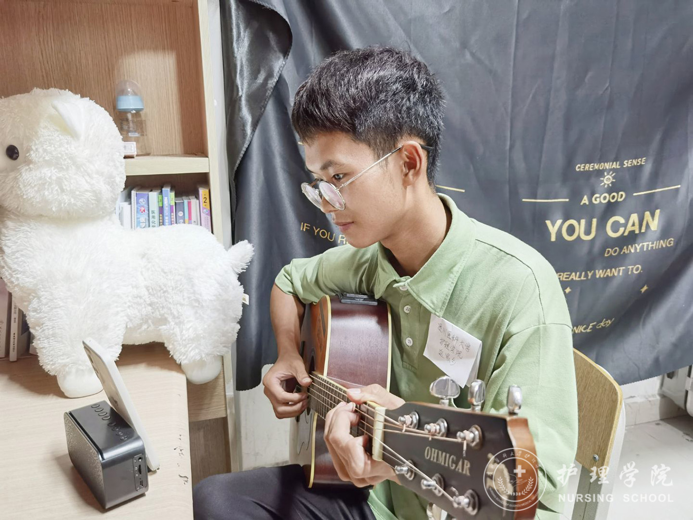 线上活动于8月14日19点以抖音直播的形式开展。以知识问答、互动科普和音频录制等多样化形式开展学习宣传活动,集知识性和趣味性于一体。直播第一部分由王彤同学针对新一轮疫情来提醒人们做好日常防护措施,切不可掉以轻心。第二部分赵前前同学通过《只要平凡》《我和我的祖国》等曲目教学,赢得了直播间同学们的连声赞叹。第三部分是由王明强同学带来的吉他以及电子琴教学,形式丰富,极具韵味。最后由余恩德同学为我们介绍黔东南的特色旅游景点,激发了大家无限的遐想。
