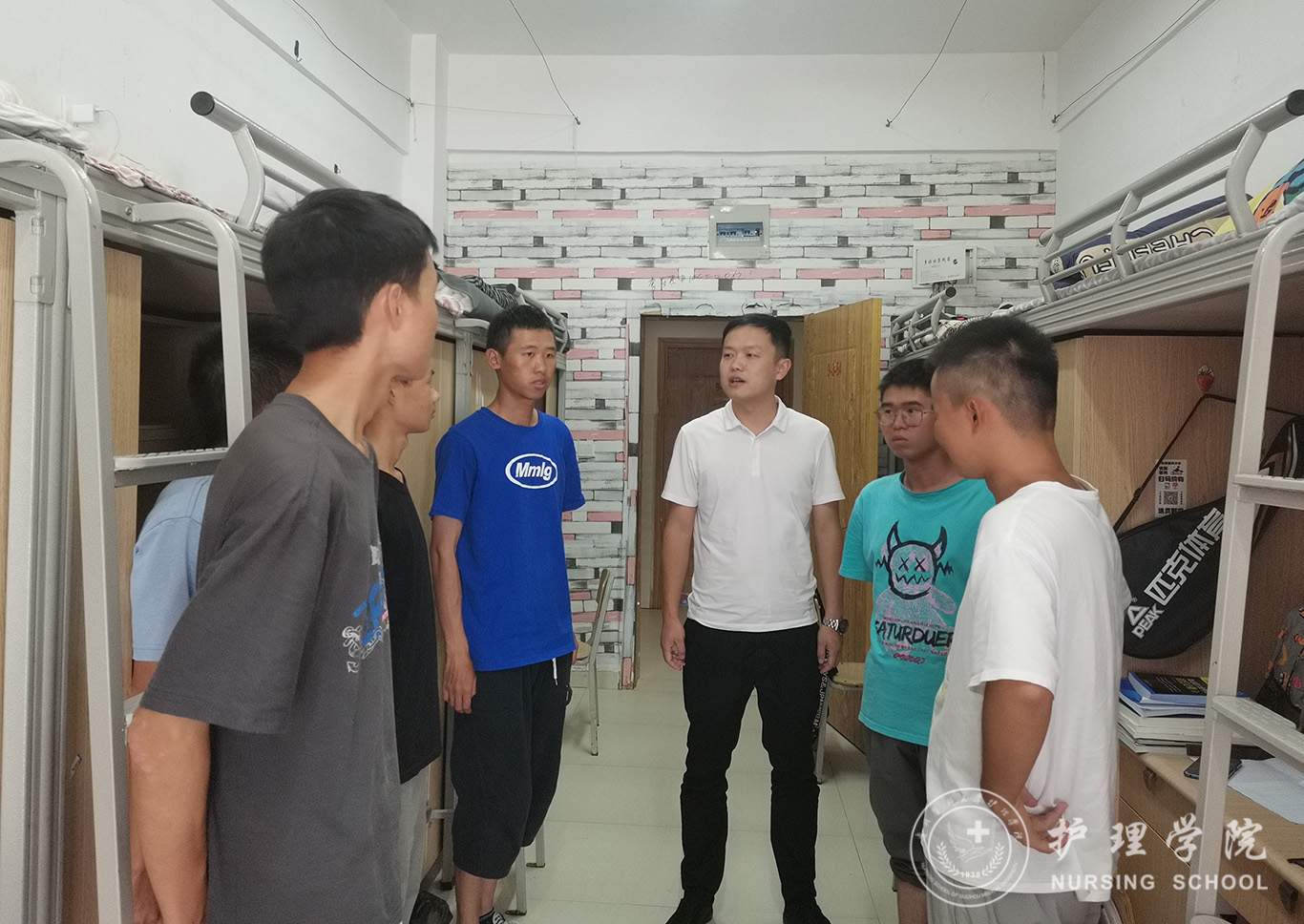 在学生寝室,何为深入了解了同学们的寝室生活情况,勉励大家要养成良好的生活和学习习惯,勤奋学习、拓展能力,希望同学们尽快适应环境,转变角色,以积极的面貌适应大学生活。同时,何为嘱咐同学们有困难要主动联系辅导员老师,寻求学校和学院帮助。