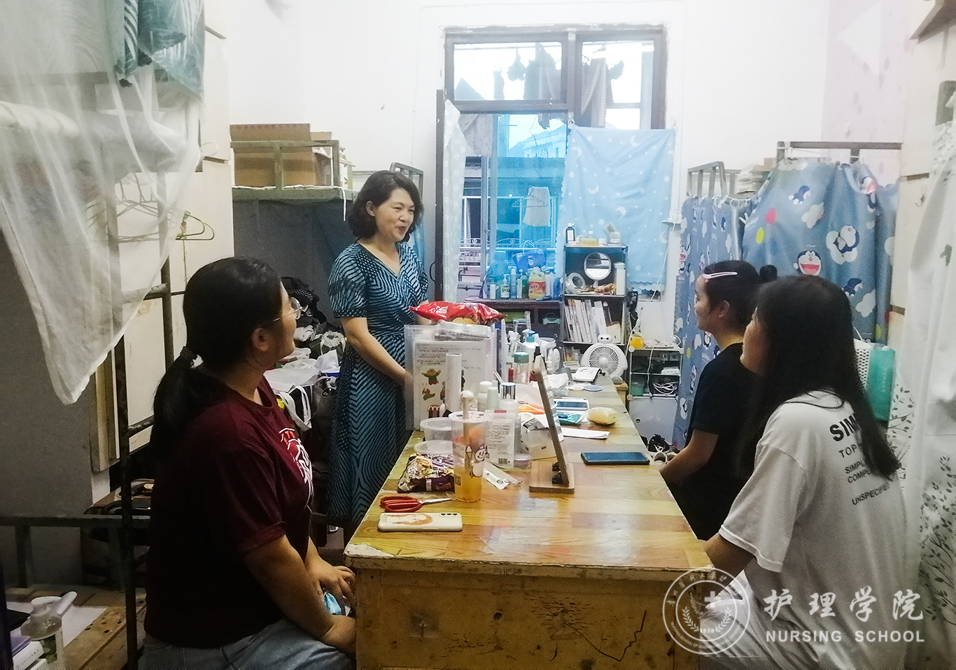 首先刘志燕和李杏春查看了楼道消防、寝室水电门窗等,对同学们进行了安全教育。接着刘志燕深入了解了同学们的实习情况,告诉同学们在实习和生活中遇到任何问题都可以主动向老师反馈,老师们会尽力为同学们分析解决问题。希望同学们认真完成实习,努力提升自身综合能力,为就业做好准备,树立“先就业再择业”及“多元化”就业观,并为同学们分析了就业方面的前景,同时鼓励同学们继续读研深造。最后刘志燕强调:一定要遵守国家和学校疫情防控规定,国庆期间,减少外出,能不出省就不出省,遵守各实习医院的假期实习管理规定。
