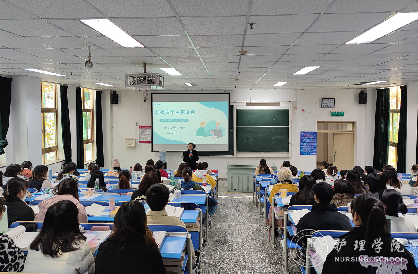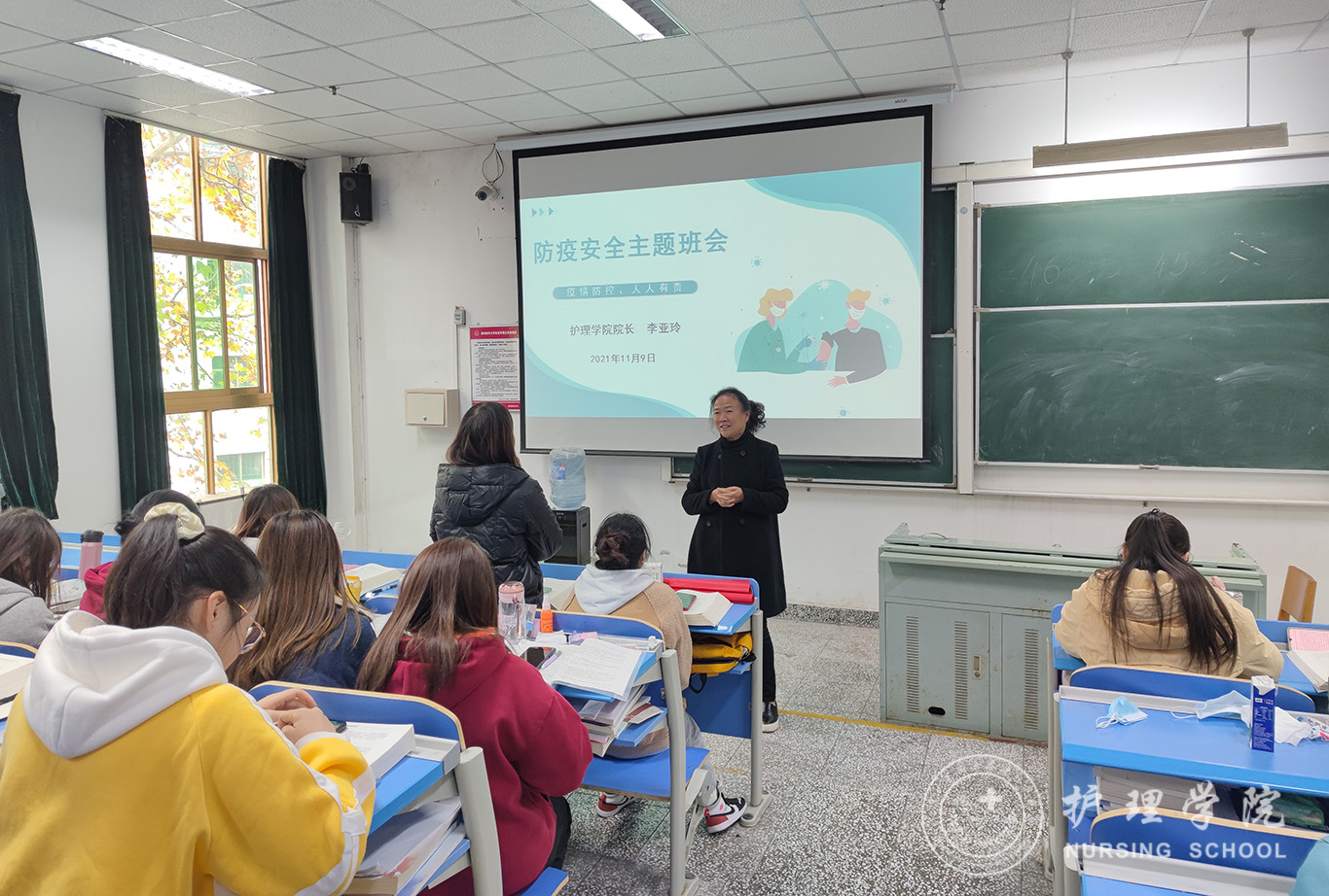 11月9日,为深入开展防疫安全教育,贯彻落实防疫常态化、防护生活化的战略目标。BEAT365英国官网2019级护理学丙班组织开展一次特别的主题班会,诚挚邀请BEAT365英国官网院长李亚玲以“防疫安全、人人有责”为题为全体同学讲授一堂生动有趣的思政课,辅导员杨叶卿参加。