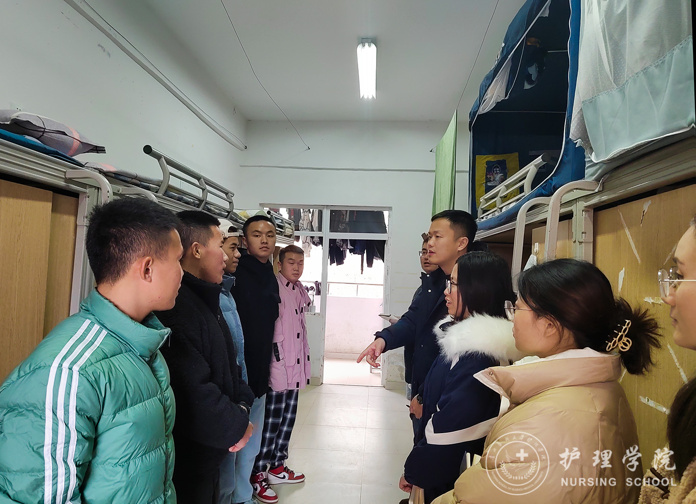 11月17日,为进一步加强安全教育工作,防范冬季安全事故发生,消除安全隐患,营造安全有序、和谐温馨的宿舍生活环境,学院党委副书记何为带领各年级辅导员共同组成排查组,在南校区7栋、9栋宿舍通过走访寝室的形式对学生宿舍进行安全隐患排查。