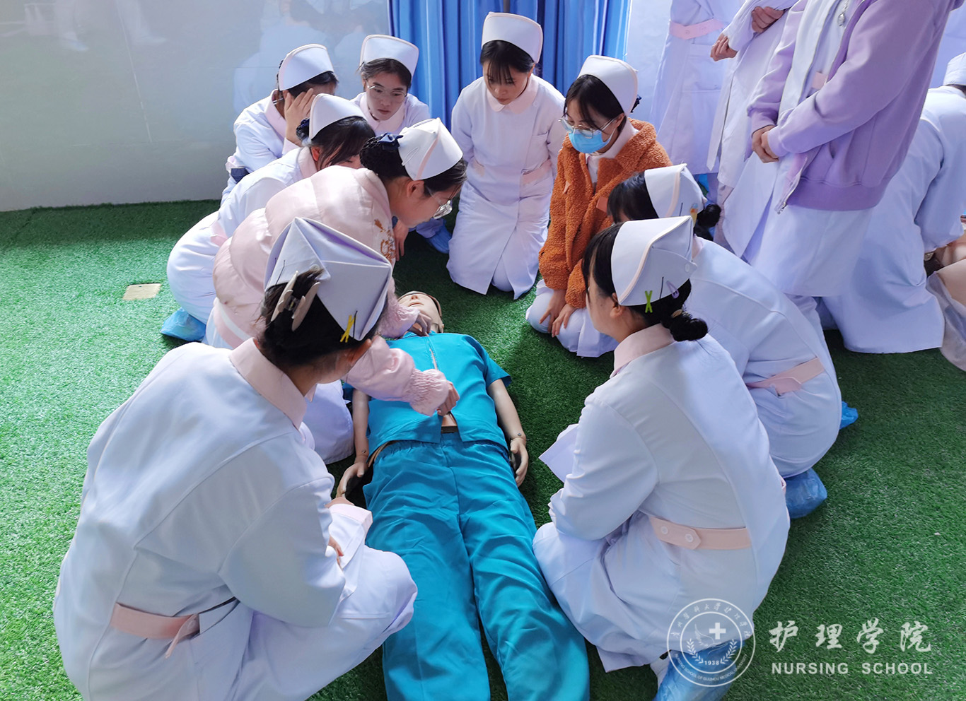 12月4日,护理技能协会于在南校区百川楼1101教室以及一楼院前急救训练室开展了心肺脑复苏技能培训。对护生进行急救知识及相关技能的培训,参与此次培训的有护理技能协会全体成员和2021级各班学生代表。