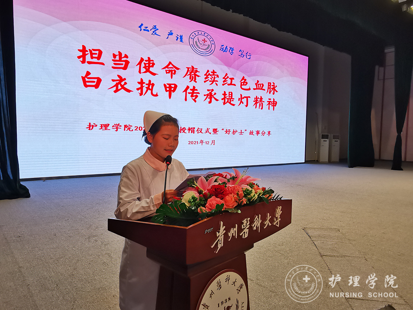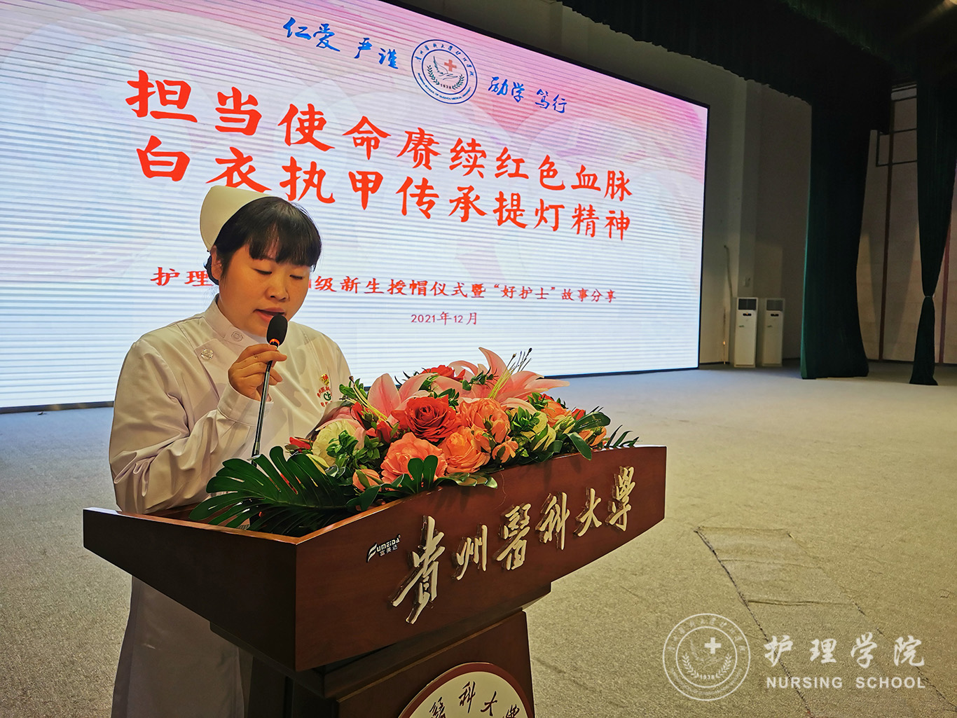 最后,附属医院护师黄燕莉、李庭庭作“好护士”故事分享,勉励全体护生刻苦学习、扎实本领,在困难中进步,在进步中成长,早日成长为一名优秀的白衣天使。