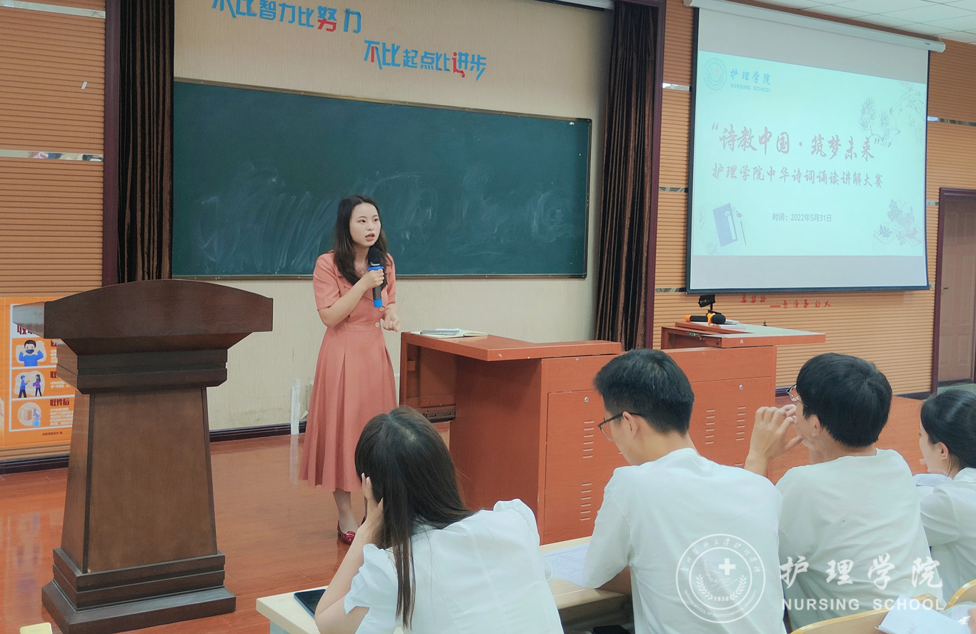 5月31日,为传承中华优秀传统文化,落实全国语言文字会议精神,BEAT365英国官网于南校区百川楼1101教室开展了“诗教中国·筑梦未来”中华诗词诵读讲解大赛。本次比赛邀请了学院学生第三党支部书记刘妍和学生会成员代表担任评委。比赛由学生会文体部王俊蜻同学主持。
