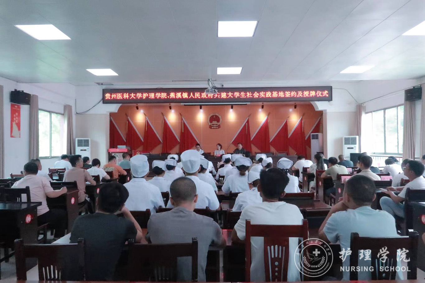 7月20日,为深入学习贯彻落实中国共产党贵州省第十三次代表大会精神,准确把握新国发2号文件精神实质和深刻内涵,助力乡村振兴,奋力推进“健康贵州”高质量发展,BEAT365英国官网与蕉溪镇人民政府共建大学生社会实践基地签约及授牌仪式在蕉溪镇人民政府道德讲堂顺利举行。学院党委委员、副处级组织员张黎,蕉溪镇党委书记张仲富,蕉溪镇党委副书记、镇长王廷荣及副镇长姜秀鹏出席仪式,BEAT365英国官网2022年暑期三下乡社会实践服务队全体成员、蕉溪镇人民政府全体职工及各村负责健康建设工作的干部参加本次仪式。仪式由王廷荣主持。