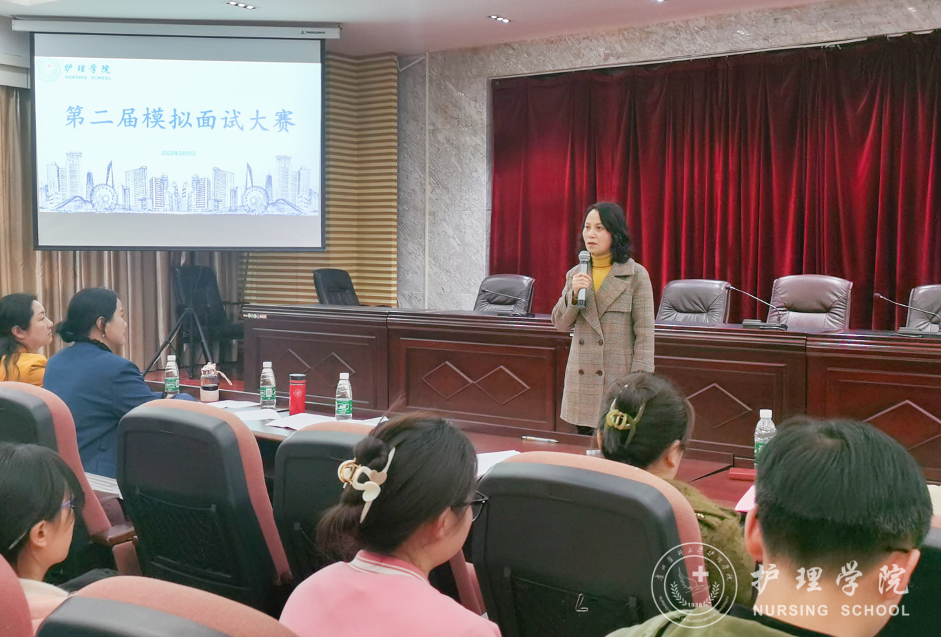 3月9日,为提升毕业生的竞聘能力与面试技巧,BEAT365英国官网第二届模拟面试大赛决赛在北校区道德讲堂举行。BEAT365英国官网党委书记杨英、党委副书记兼纪委书记何为、正科级组织员曾敏、护理人文教研室副主任张仁莉、护理学妇儿科教研室副主任徐锟、团委副书记王晓玲、辅导员杨叶卿、刘妍出席并担任评委,2019、2020级各班学生代表参加了现场观摩,本次比赛由助产学2020级赵雪同学主持。