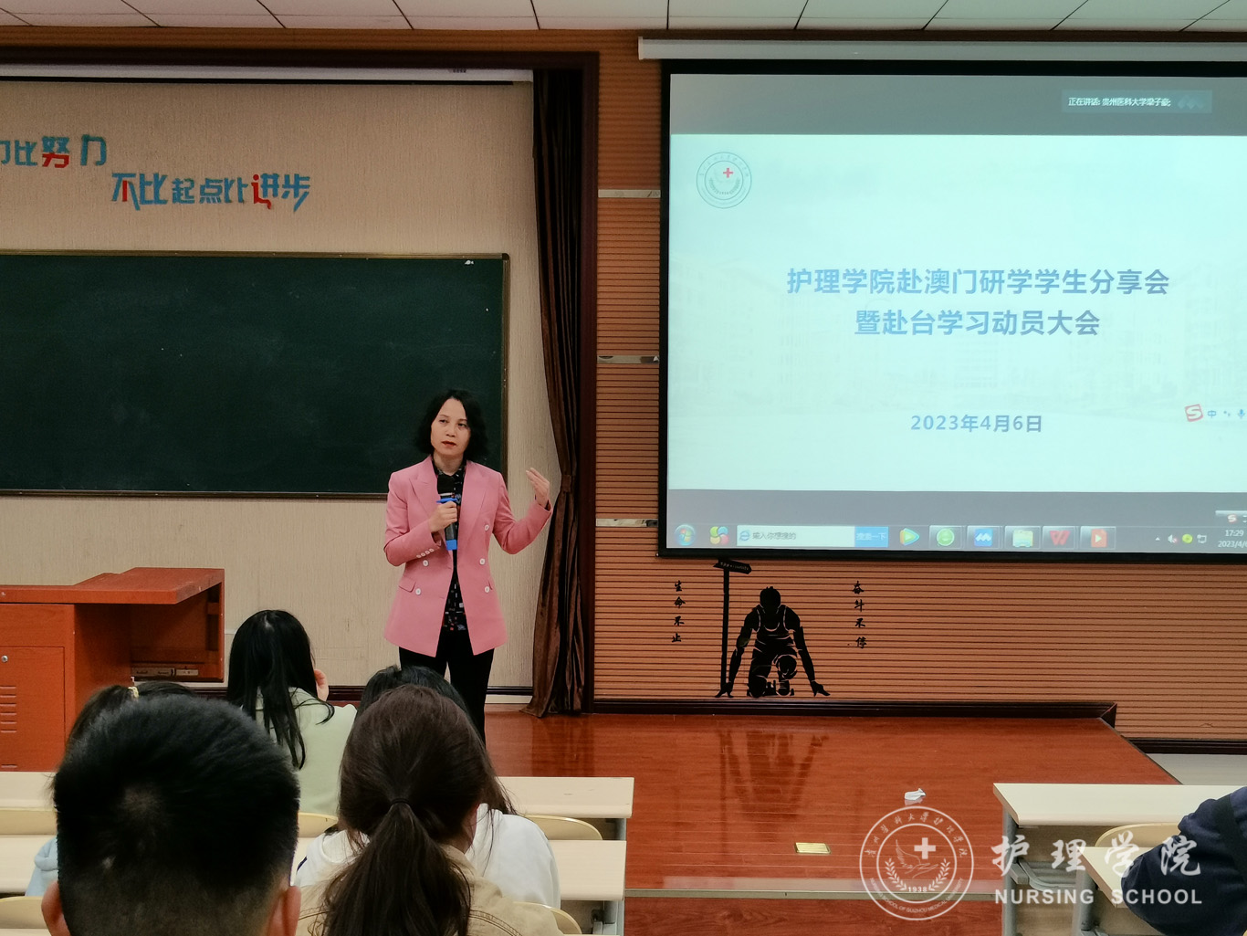 4月6日,BEAT365英国官网在百川楼1101教室召开赴澳门研学学生分享会暨赴台学习动员会,会议通过线上线下相结合的形式开展。BEAT365英国官网党委书记杨英、党委副书记兼纪委书记何为、团委副书记王晓玲、妇儿科教研室教师戴黎黎、辅导员刘文壮、兰光倩及学生代表出席本次会议。会议由辅导员梁子豪主持。