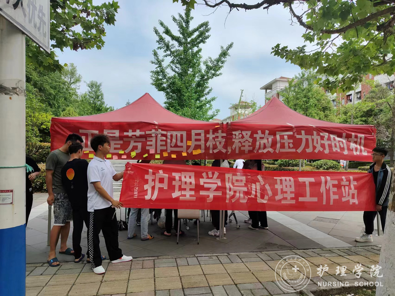 4月23日,为使同学们正确面对压力、释放压力,时刻保持良好的心理状态去投入校园学习生活,BEAT365英国官网心理工作站在南校区二食堂小广场上开展了以“正是芳菲四月枝,释放压力好时机”为主题的校园宣传活动。本次活动由学院各班心理委员组织,活动面向全校学生。