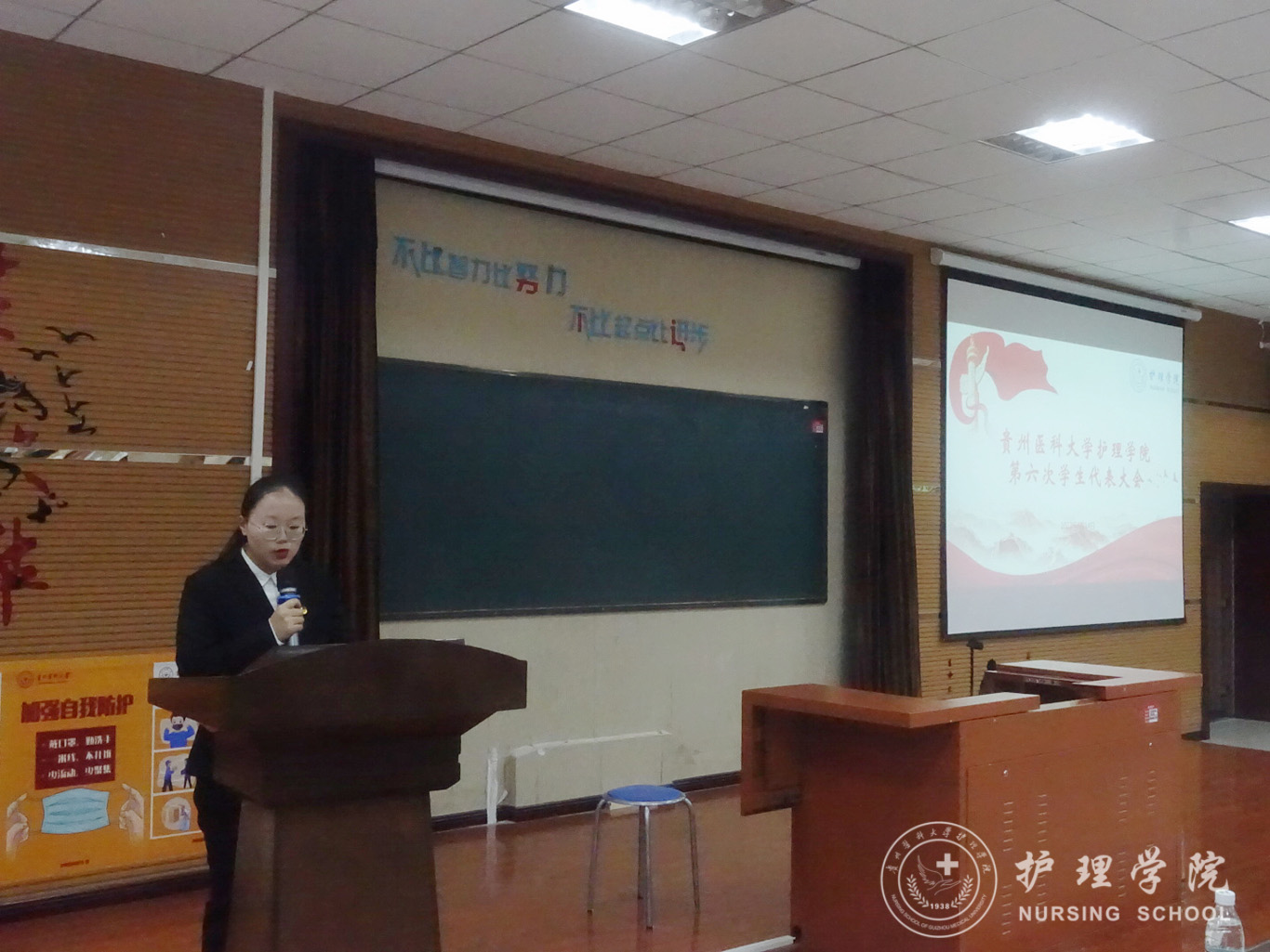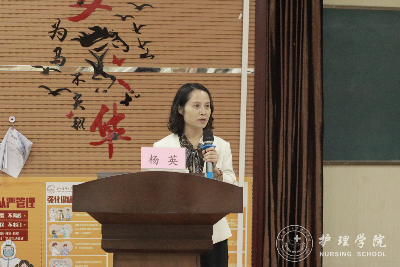 杨英作总结讲话。她对学院团学工作给予了充分肯定,并对学生组织新成员给予厚望,坚信这次大会必将成为我院学生工作开拓前进的新里程碑。她对新一届学生会成员提出要求:一要担当起重任,共同参与新校区搬迁工作和建设工作,提升自我管理、自我教育、自我服务等能力;二要做到履职尽责,为同学做好服务,不断提升服务水平;三要充分发挥先锋模范作用,将个人追求同国家民族的前途命运紧密结合起来。