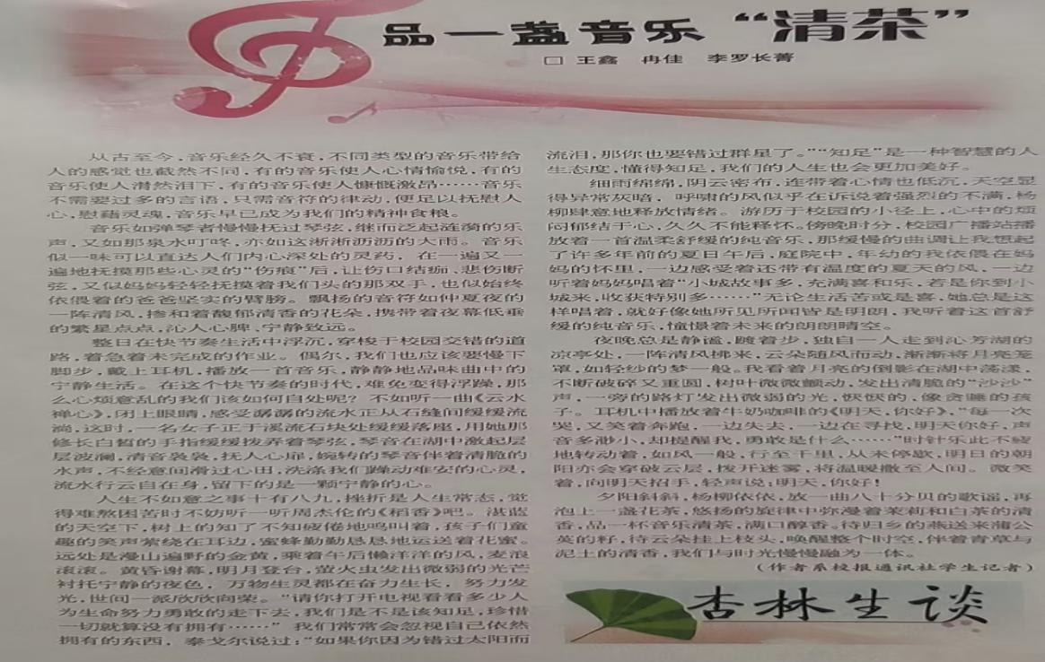 2022年在校报社中与不远一起撰写的专栏《品一盏音乐“清茶”》登报: