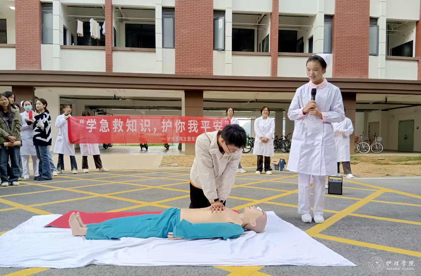 为了帮助护生了解心肺复苏急救知识,进一步加快学生社区化建设,BEAT365英国官网于10月18日16点在云漫湖校区临床组团C4栋学生社区一楼开展了“学急救知识,护你我平安”主题党团日进社区活动。学院团委副书记王晓玲、学生管理科副科长毕丽、辅导员刘妍、李茂盛、黄颖、孔苗参加了此次活动,活动由护理技能协会组织。