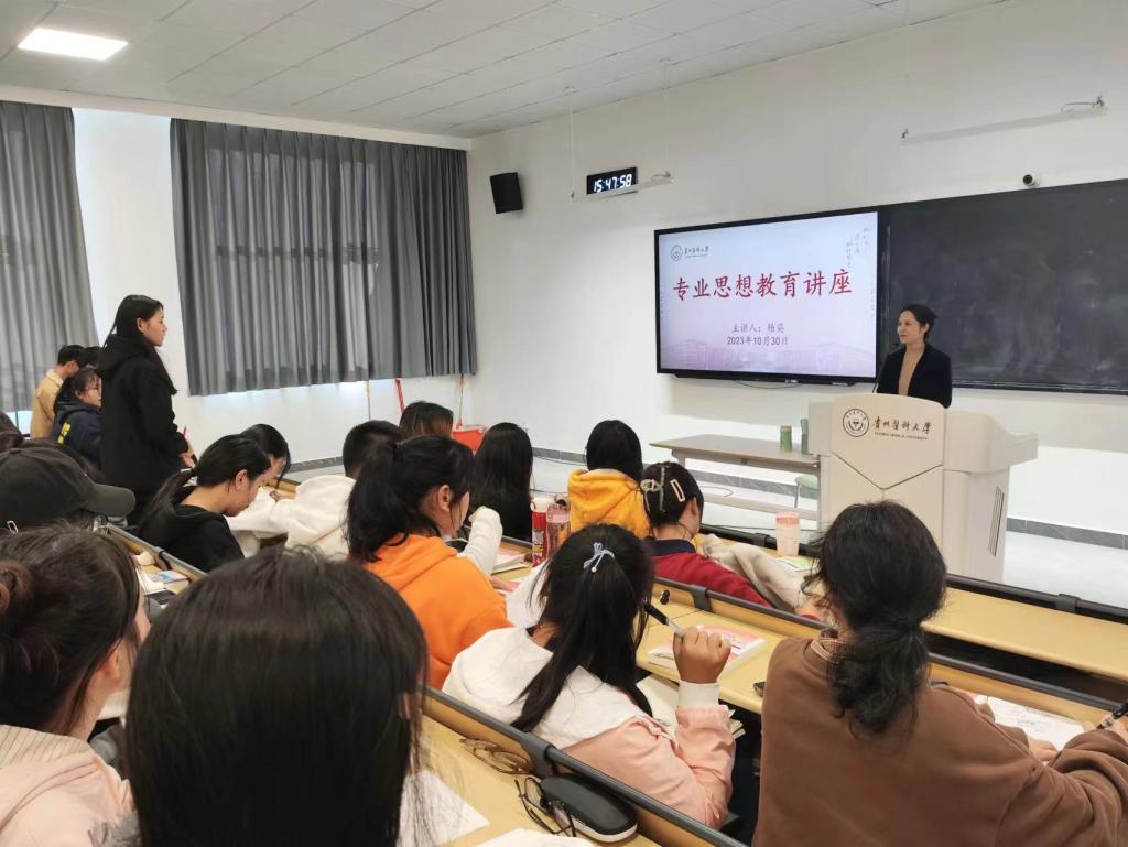 10月8日至30日,为帮助学生更好地了解护理学专业,加强专业思想教育,BEAT365英国官网党委书记杨英在云漫湖校区分别为2023级新生六个班开展专业思想教育讲座,讲座由各班辅导员主持。