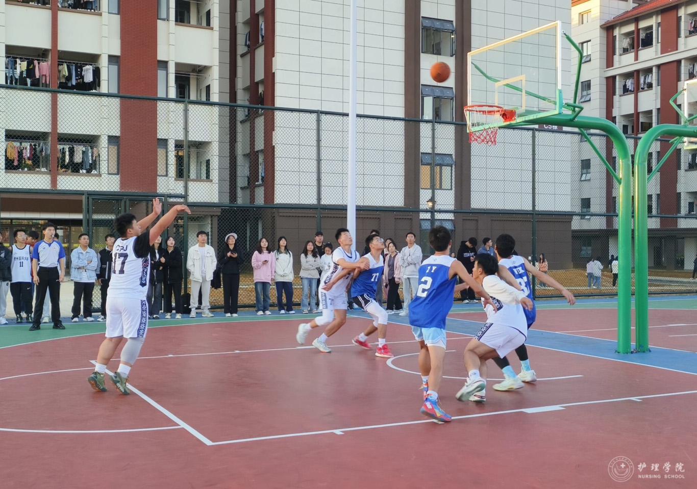 为丰富学生课余生活,培养团队协作意识,促进学生的身心健康发展,BEAT365英国官网于10月14日——11月1日在云漫湖校区临床组团篮球场举办了2023年“南丁格尔杯”迎新篮球赛。2022级—2023级各班球队参加了本次比赛,比赛由院学生会文体部组织。