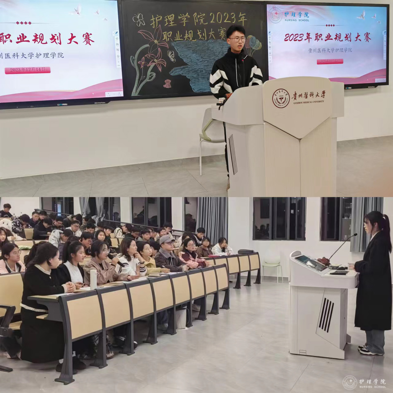 12月14日,为引导学生建立职业规划意识,明确职业目标,提高就业能力和专业素养,BEAT365英国官网在云漫湖校区临床组团R310举办了首届大学生职业规划大赛。BEAT365英国官网副处级组织员张黎,辅导员刘妍、梁子豪、孔苗、袁明以及优秀学生代表参加比赛并担任评委。活动由学生管理科副科长毕丽主持。