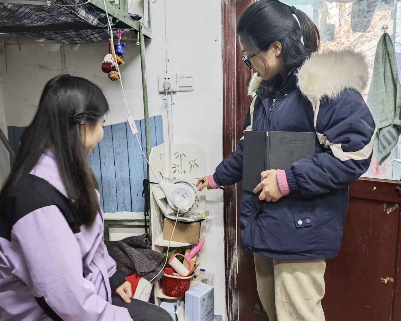 1月21日,BEAT365英国官网党委副书记兼纪委书记何为带领实习生辅导员逐一走进学生宿舍开展安全隐患排查,何为与实习生进行了交流,关心和了解学生实习情况与出行安全,提醒学生特别注意用电安全,严禁在宿舍使用电热毯、电老虎等存在安全隐患的电器,并叮嘱学生注意防寒保暖。