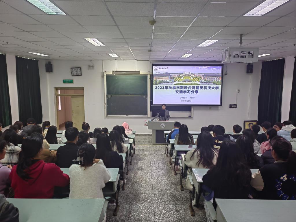 杨霜玲围绕初识辅英、关于学习、生活、娱乐共四个方面阐述了在台湾辅英科技大学的学习生活情况。介绍了选修课程的授课内容、课程要求和考核方式,总结了台湾高校本科生课程教学的特点,并通过参加辅英科技大学华语文中心移地学习暨文化参访活动以及文化艺术节等演出,让同学们感受到了台湾的历史文化和自然风光。