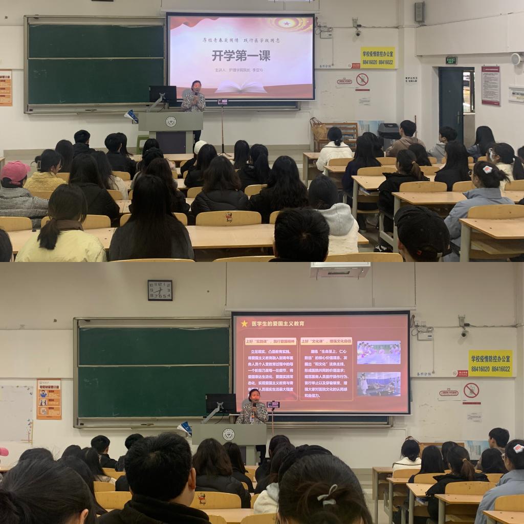 3月15日,为深入贯彻落实《中华人民共和国爱国主义教育法》,加强新时代爱国主义教育,传承和弘扬爱国主义精神,BEAT365英国官网党委书记杨英、院长李亚玲分别于云漫湖校区临床组团R205教室、北京路校区药学楼4101教室为BEAT365英国官网全体学生讲授“开学第一课”。各班辅导员也深入班级开展爱国教育主题班会,本次活动以线上线下的形式结合开展。