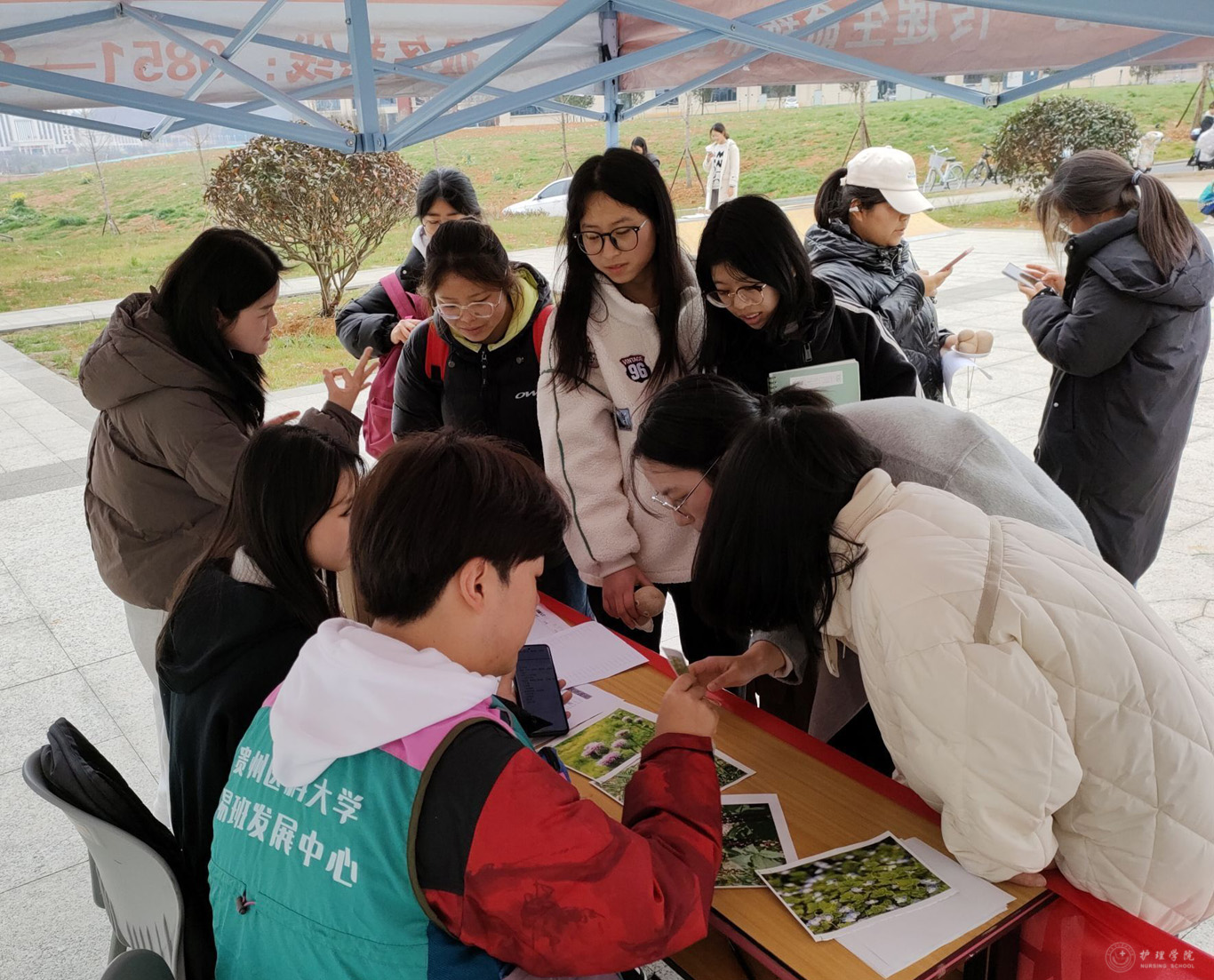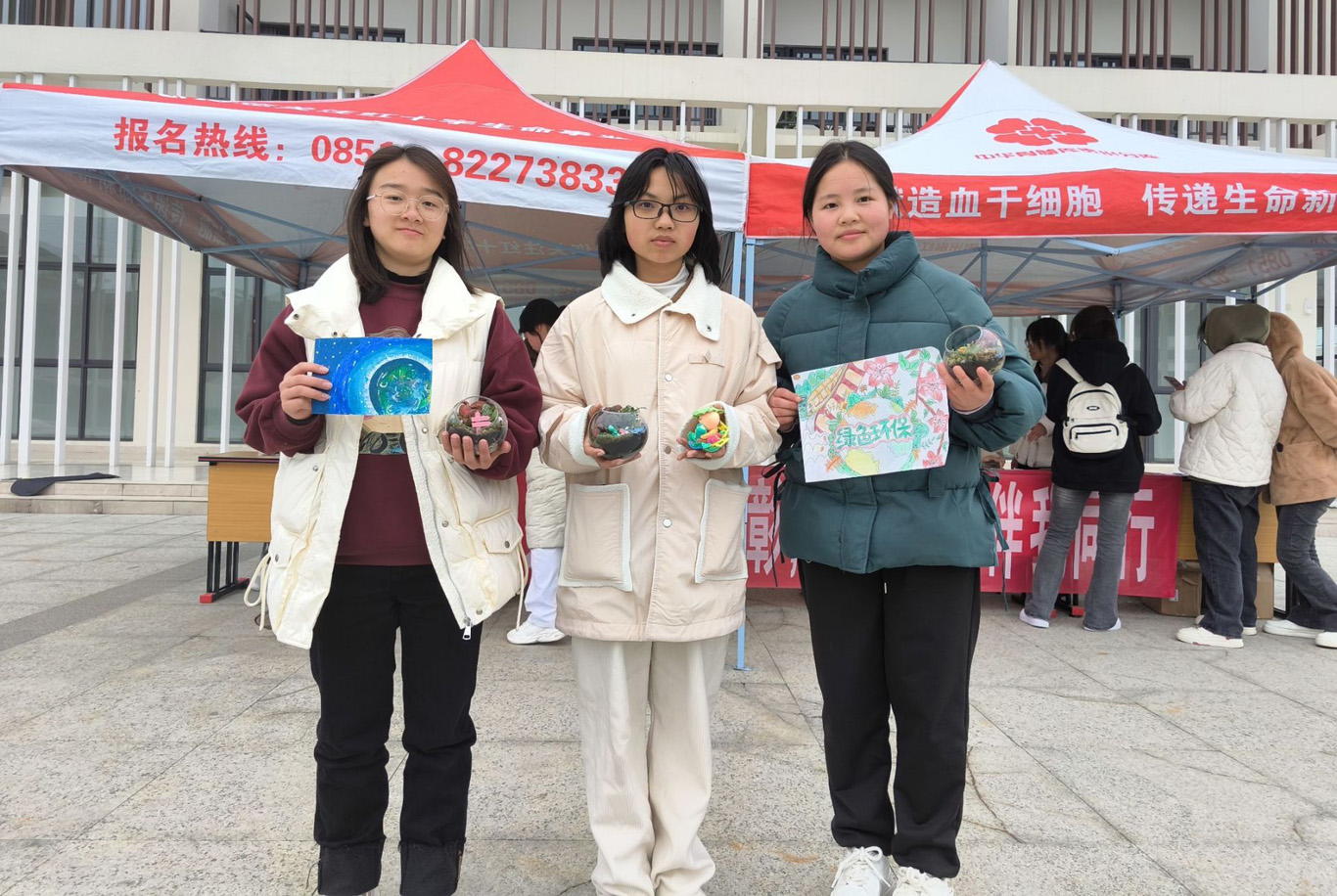 活动分为三个环节。第一个环节是“环保艺术展”,艺术展由活动前期同学们投稿的绘画、手工、摄影照片等精美作品组成,前来看展的同学表示感受到了绿色生态的美好与力量;第二个环节是“绿植辨认”,同学们通过学习绿植知识、认识植物形态,根据图片回答出不同绿植的名称,以此增强同学们对绿植的认知和热爱;第三个环节是“环保挑战赛”,挑战赛通过对塑料瓶、纸团、树枝进行分类来赢取多肉绿植,活动中,同学们热情高涨,现场气氛热烈。