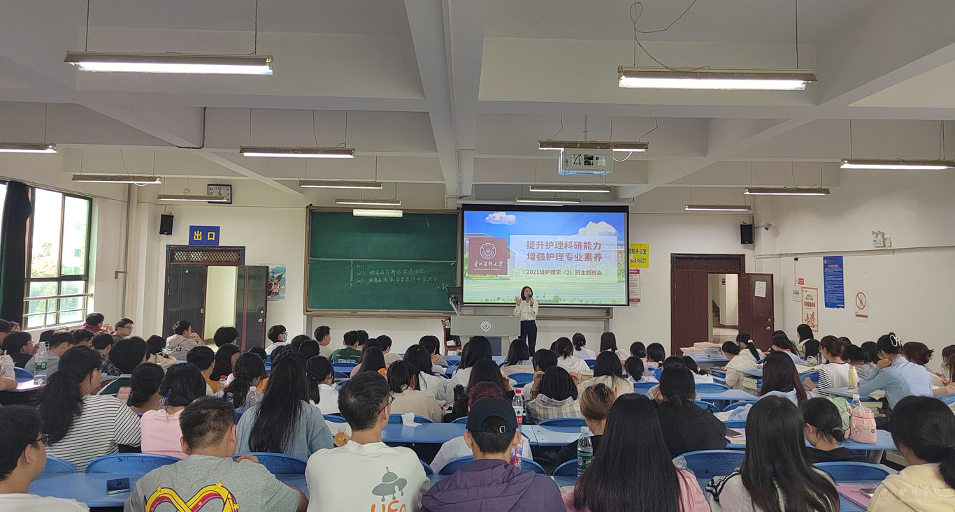 张黎首先在北校区基础二号楼2501教室,组织班级同学开展了一次以“提升护理科研能力,增强护理专业技能”为主题的班会。会上张黎强调了科研能力提升的重要性,她指出开展本科毕业论文撰写工作是提升科研能力的重要途径,同时向同学们介绍了毕业论文撰写需要准备的基本思路和注意事项,建议同学们要为论文的撰写做好充足的知识积累和心理准备,潜心探索,收获成长。
