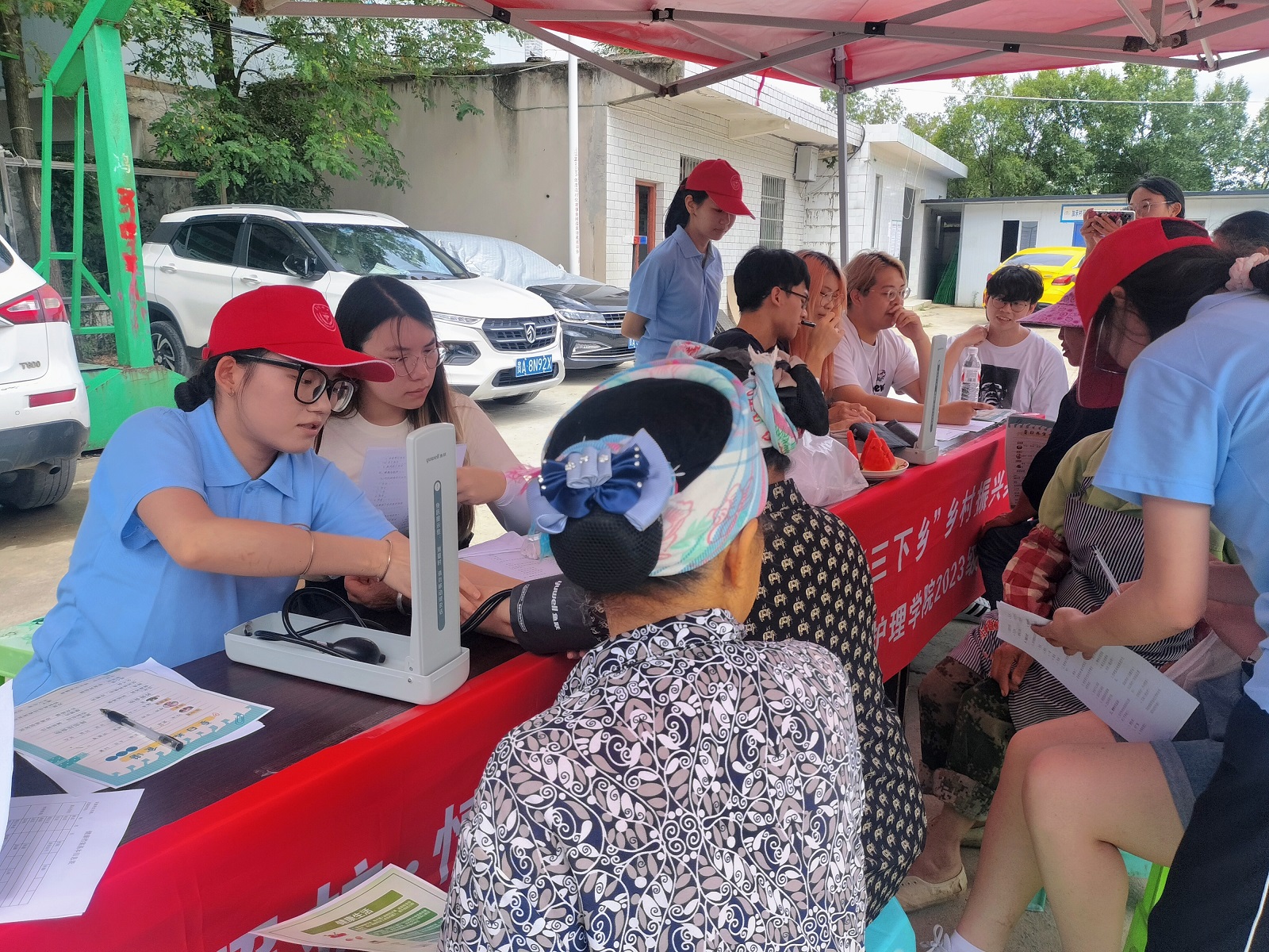 实践队在嘉禾村开展了医疗科普活动,面向当地村民进行健康知识宣讲和义诊服务。队员们协助老人们填写健康档案、量血压;讲解高血压、糖尿病等多种慢性疾病相关的知识和常用药品的使用方法;并将提前准备好的生活用品、医疗保健科普手册、营养膳食宣传单分发给村民们。村民们对本次义诊活动赞不绝口,夸赞青年一代有担当,有爱心。