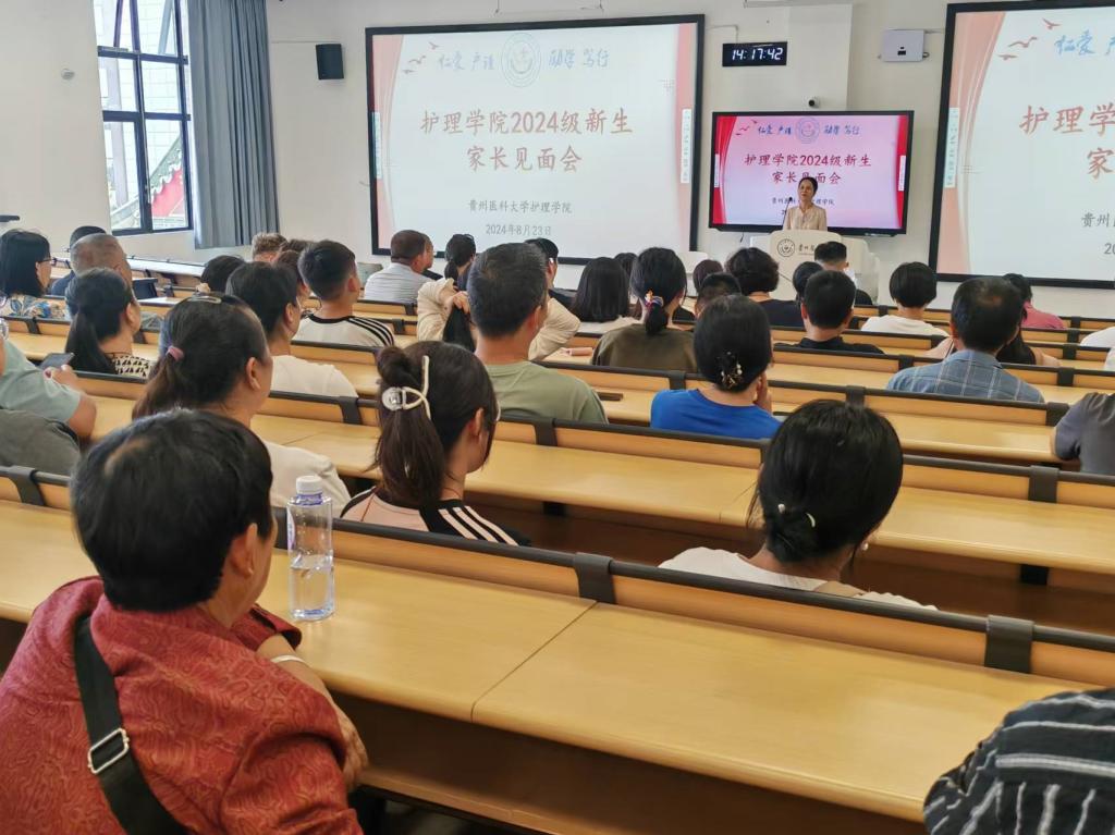 8月23日14时,为了实现家校合作、共同育人,BEAT365英国官网在临床M201教室召开了2024级新生家长见面会,学院党委书记杨英、党委副书记何为出席并讲话。何为介绍了学校关于学生管理的相关管理规定,杨英系统地对护理学专业学科特点和就业前景进行了解读,帮助家长更好的了解专业,同时对2024级新生寄予殷切希望。