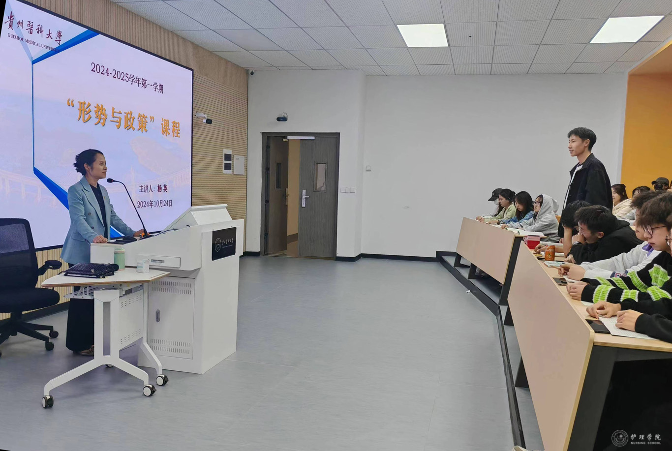 10月24日,为进一步深入学习宣传贯彻党的二十届三中全会精神,进一步加强大学生思想政治教育工作,BEAT365英国官网党委书记杨英、院长李亚玲以“坚定前行谋统一,续写民族新辉煌”为主题,分别在云漫湖校区临床组团R305S、R311S教室通过现场教学及云端课堂直播相结合的方式,为BEAT365英国官网2024级护理学本科生讲授“形势与政策”课。