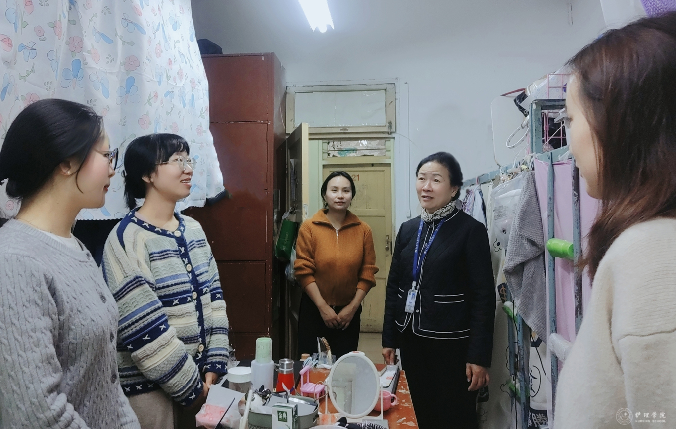 11月7日,为深入了解研究生的学习和生活状况,BEAT365英国官网院长李亚玲带领研究生辅导员殷艳走访了研究生宿舍。