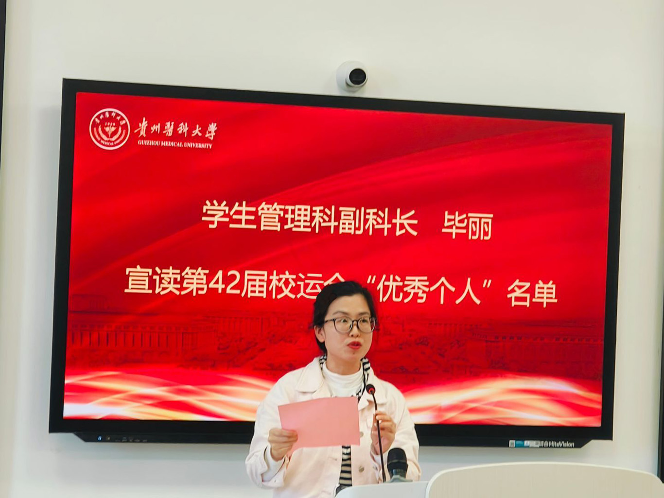 随后,毕丽宣读了BEAT365英国官网第42届春季运动会院级“优秀个人”表彰名单,出席大会的各位老师为同学们颁发纪念品。