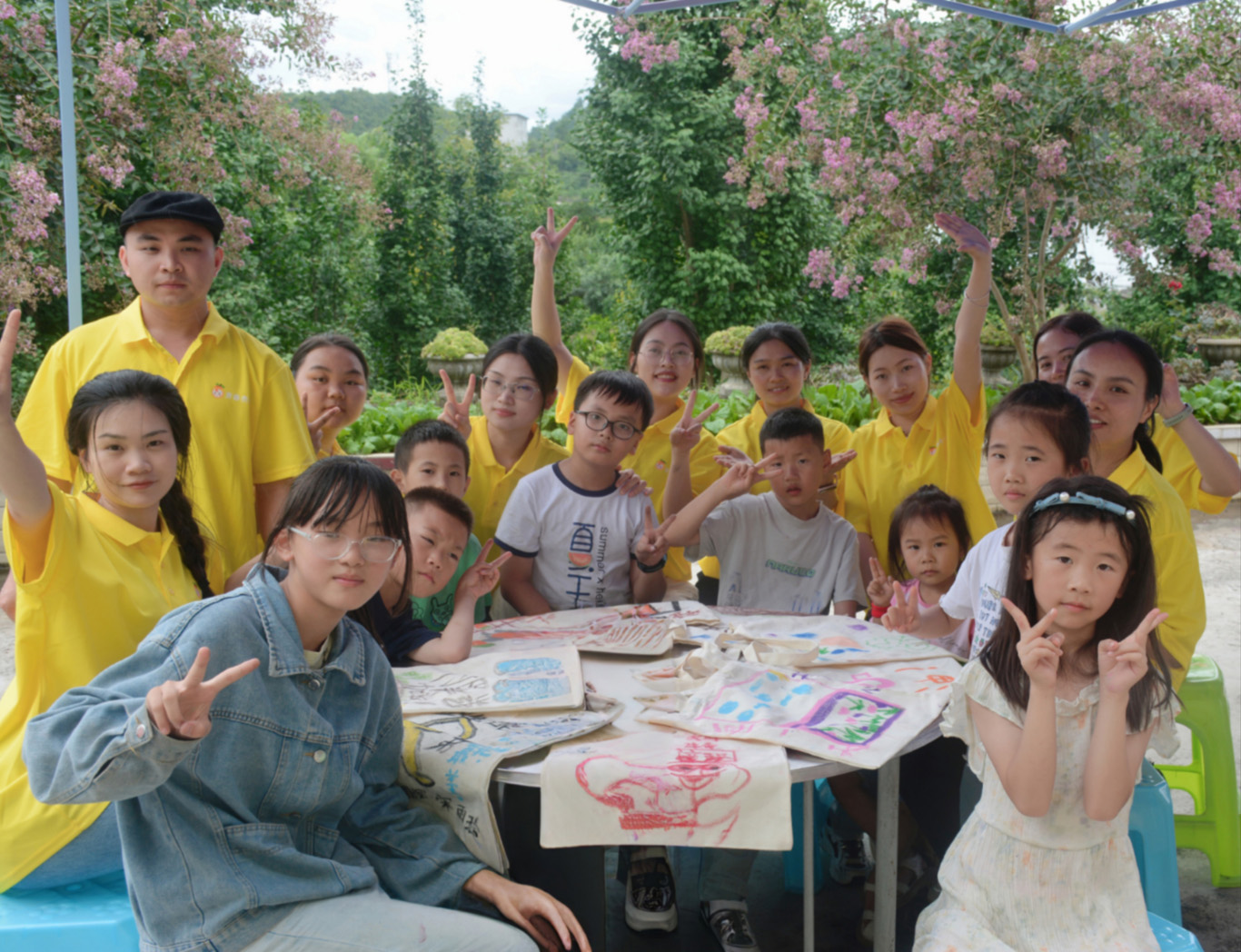 7月22日,在家长及孩子监护人的配合下,师生们带领20名留守儿童开启了一场别开生面的“植物拓印艺术疗愈”课堂。孩子们在野外采集银杏叶等乡土植物,制作出自己专属的帆布袋作品。孩子们在游戏与绘画中表达情感、释放内心,用自然艺术回应最本真的情感需求。