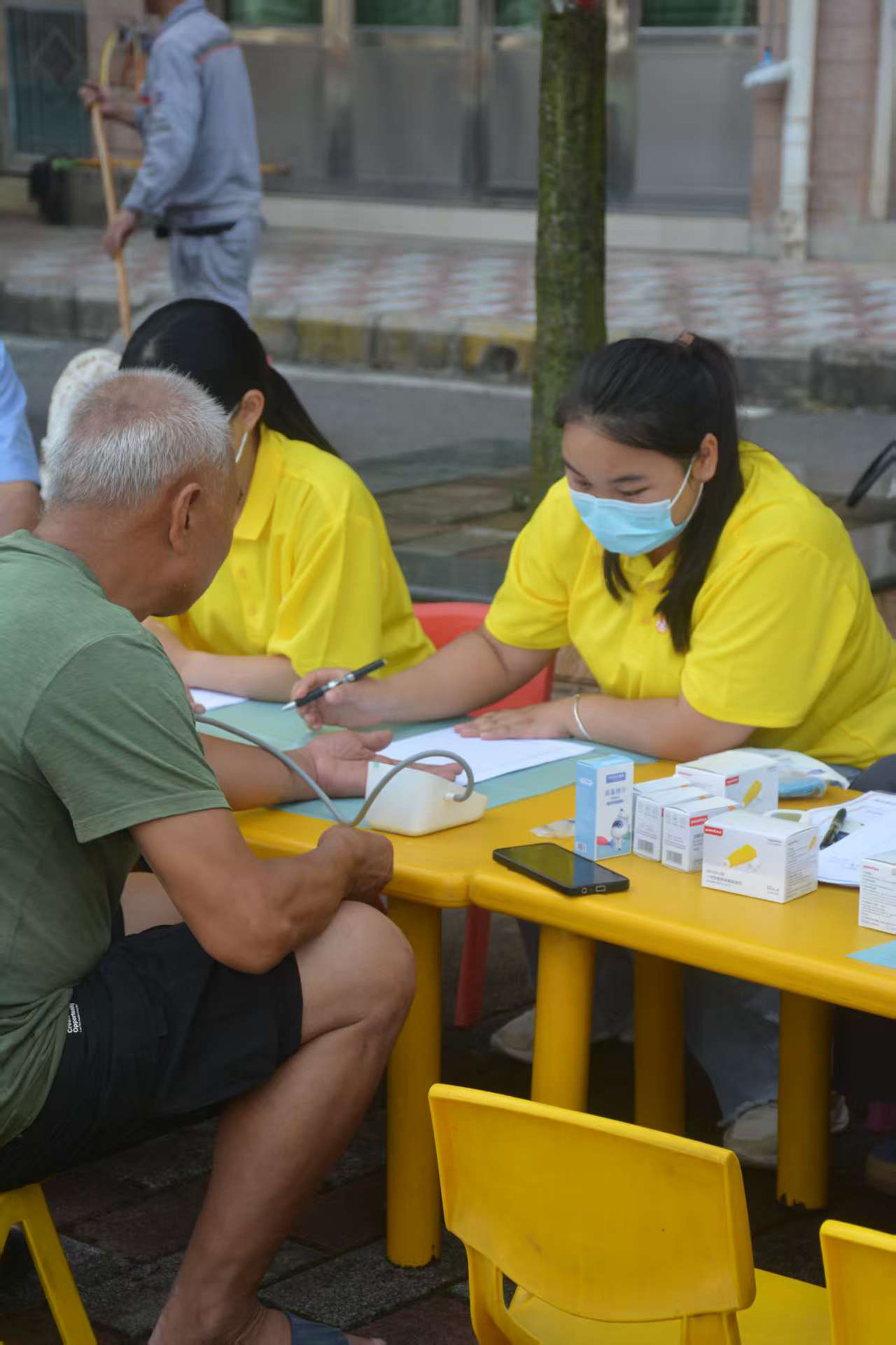 7月23至25日,在村卫生室协助下,护理研究生为近300名村民提供了血压、血糖筛查,并为部分糖尿病高危患者进行了视网膜病变筛查。结合发现的慢性病情况,开展了健康知识宣讲,发放药物分装盒与限盐限油壶等健康礼包,将护理专业知识转化为村民“看得懂、学得会、能用上”的日常技能。