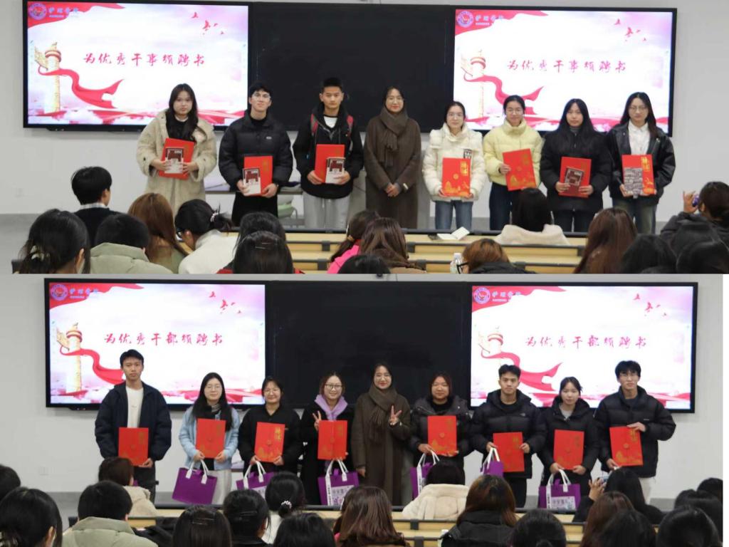 接着,执行主席王国应宣读新一届学生会成员名单,为组织注入新鲜活力。孔苗为上一届优秀干部与干事颁发聘书,感谢他们的坚守与付出。会议还对运动会、迎新工作中表现突出的优秀志愿者予以表彰,让每一份奉献都被看见、被铭记。