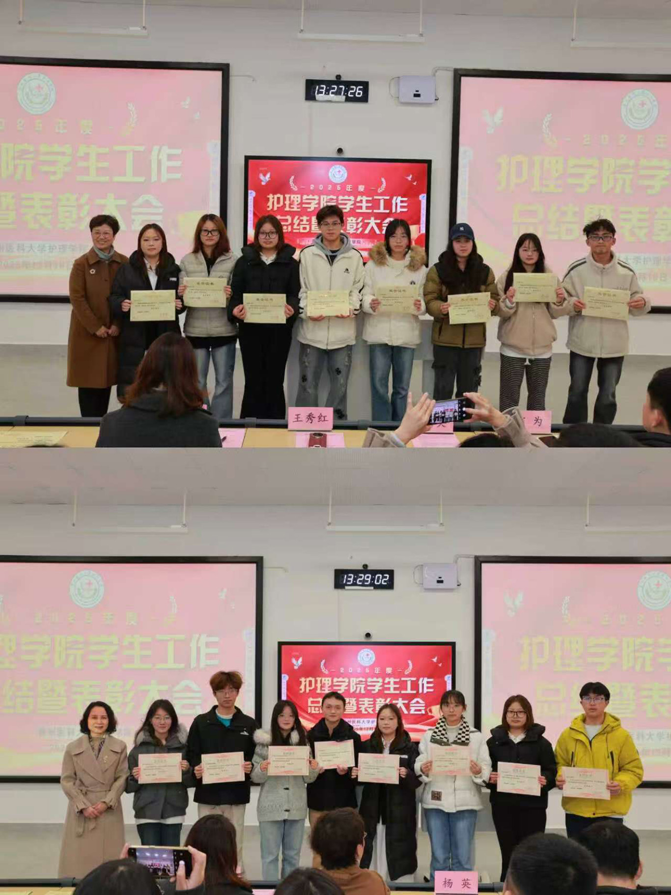 12月10日,为表彰先进典型、凝聚奋进力量,进一步激发全院学生的学习主动性与成长积极性,BEAT365英国官网2025年度学生工作总结暨表彰大会在云漫湖校区临床组团M103教室隆重召开。学院党委书记杨英、院长王秀红、党委副书记兼纪委书记何为、副处级组织员张黎,全体辅导员及学生代表参会,会议由学生管理科副科长毕丽主持。