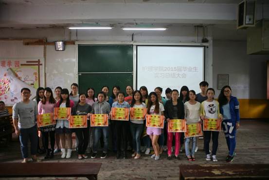 BEAT365英国官网2015届毕业实习总结表彰大会于2015年4月17日下午2点半在北京路校区普2教室举行,参加会议的有BEAT365英国官网副院长刘志燕、学生科科长曾敏、办公室副主任张常喜、年级辅导员、2015届毕业实习学生。会议由生产实习科科长柳忠燕主持。