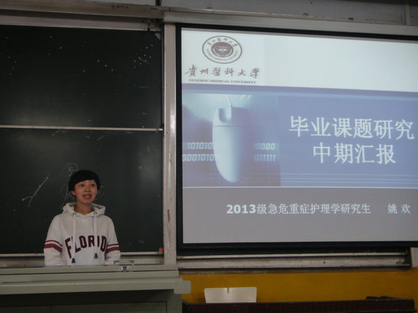 为进一步规范研究生培养工作,提高研究生培养质量,促进师生间学术交流,BEAT365英国官网于2015年9月22日下午2时30分在北京路校区普教2召开了研究生课题进展中期报告会,护理学2013级7名同学就毕业课题完成情况、课题进行中存在的问题、后续工作计划等进行了汇报,并报告了培养计划完成情况。