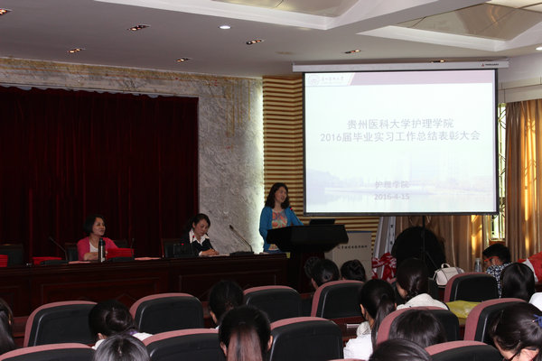 BEAT365英国官网2016届毕业实习总结表彰大会于2016年4月15日下午2点30分在北京路校区道德讲堂举行,BEAT365英国官网党委副书记杨英、副院长刘志燕和生产实习科、学生科、综合办公室、辅导员以及2016届毕业实习学生参加了大会,大会由柳忠燕主持。