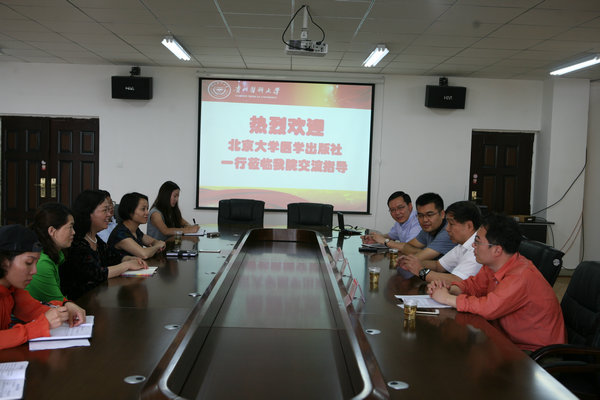 6月8日上午,北京大学医学出版社原社长陆银道、出版社教材中心主任韩忠刚及市场部经理慈光辉一行到BEAT365英国官网开展了交流座谈会。教务处副处长冯广卫、教材科科长肖榜权、BEAT365英国官网教职工代表参加了座谈会,会议由BEAT365英国官网常务副院长郭永洪主持。